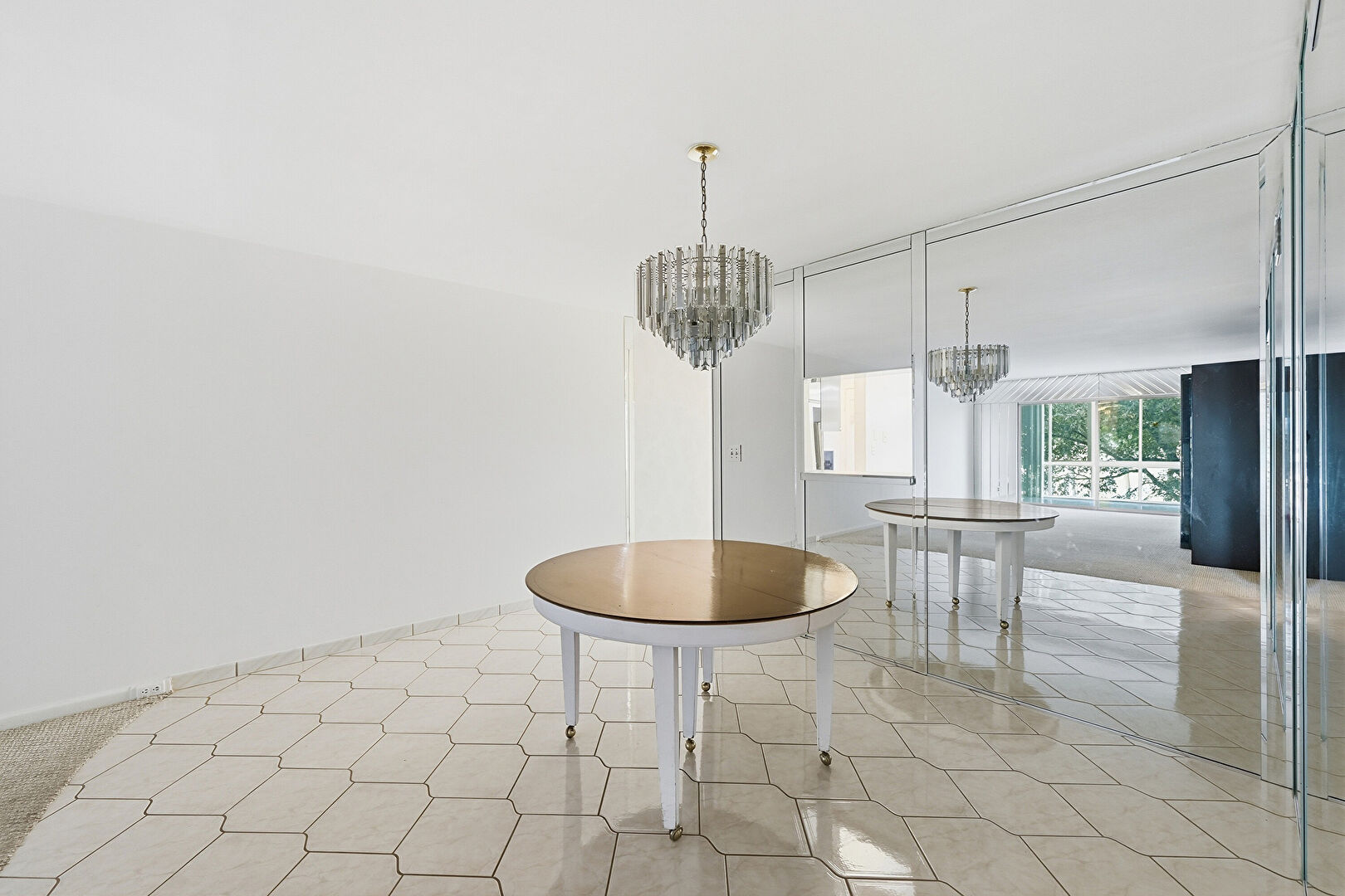 Carpet, Drywall, Natural Light, Tile Floor, Vent, Notable Chandelier