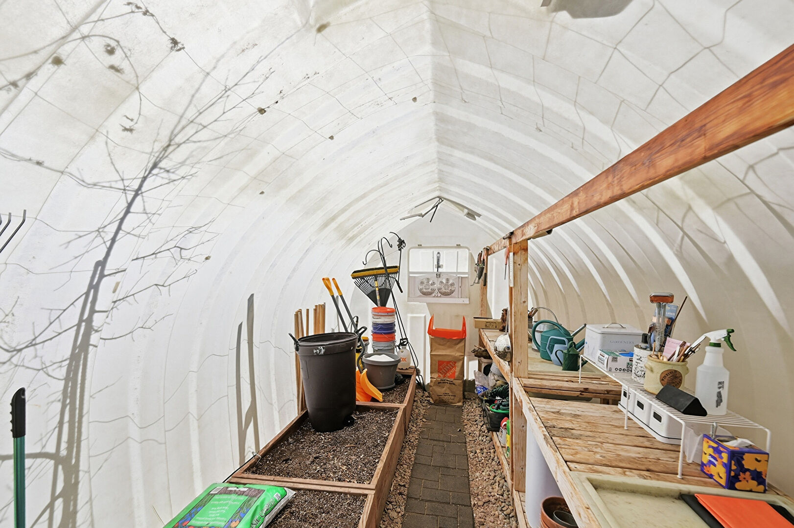 Brick Siding, Deck, Downspout, Driveway, Fence, Garden, Gutters, Horizontal Siding, Outdoor Structure, Patio, Shingle Roof, Stairs, Patio, Shed, Shingle Roof, Stone Siding