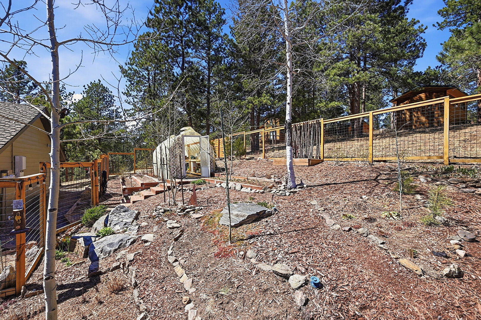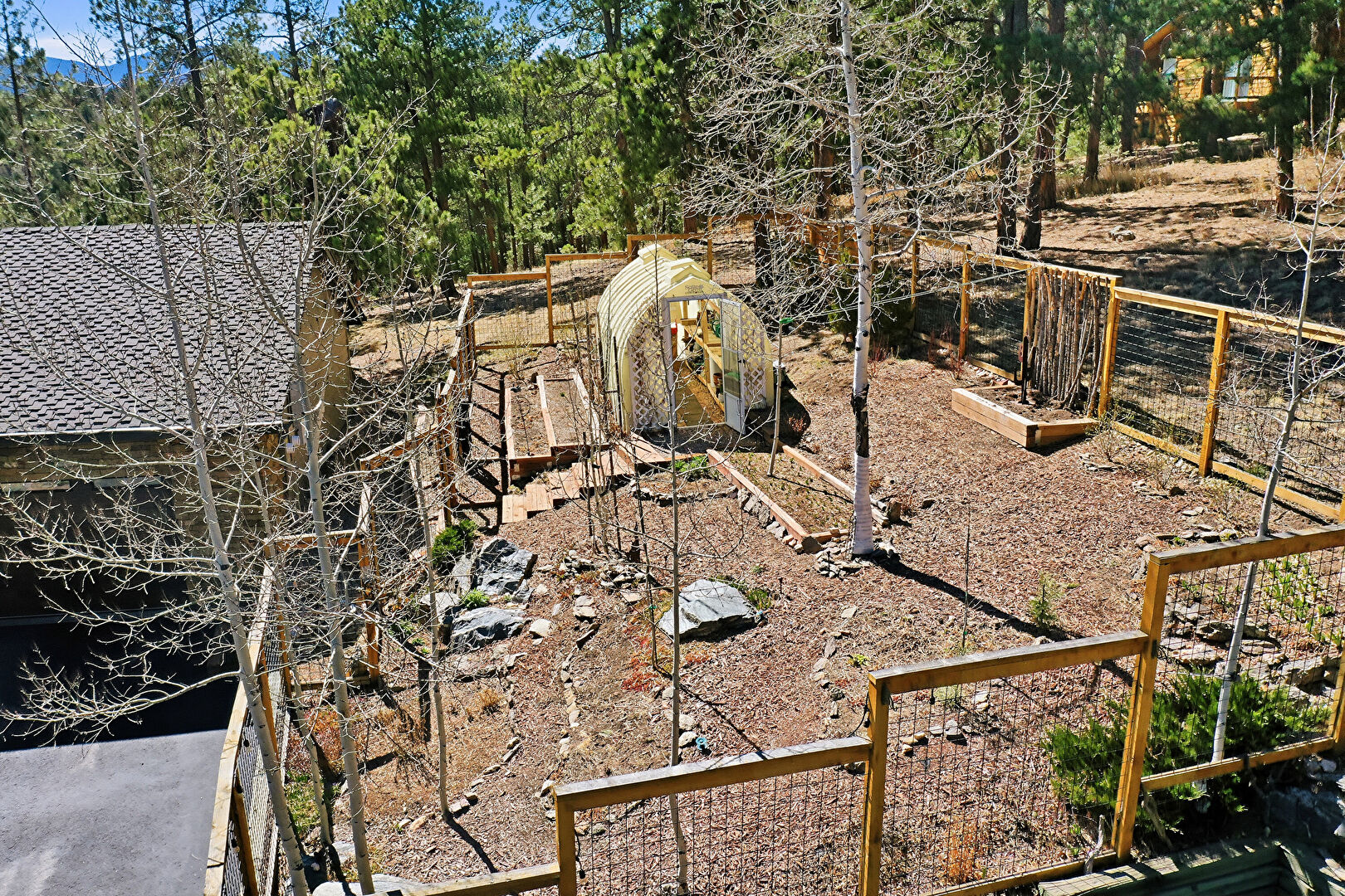 Fence, Garden, Gate, Outdoor Structure, Patio, Shed, Water Meter, Deck, Garden, Woods View