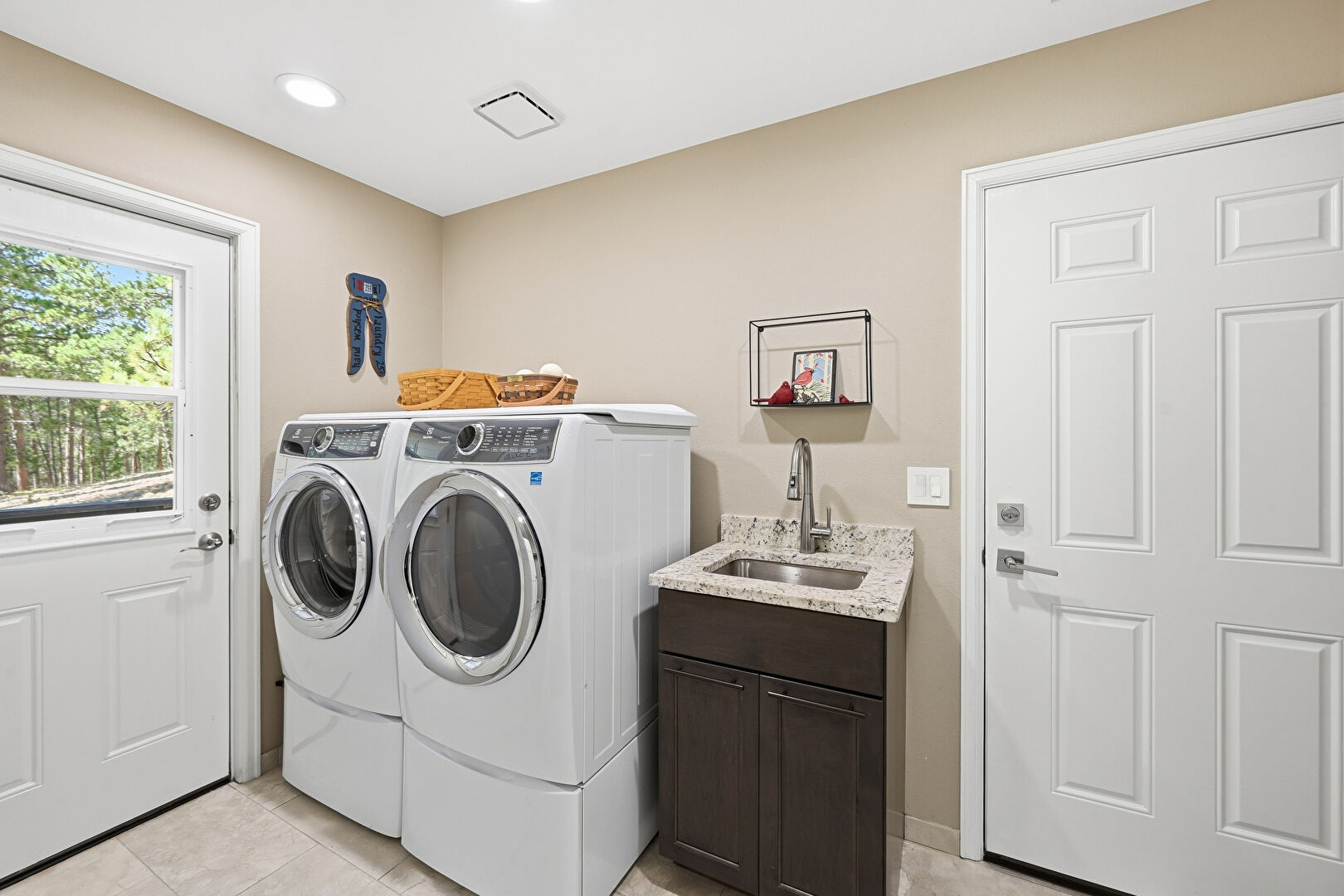 Drywall, Natural Light, Recessed Lighting, Tile Floor, Vent, Laundry