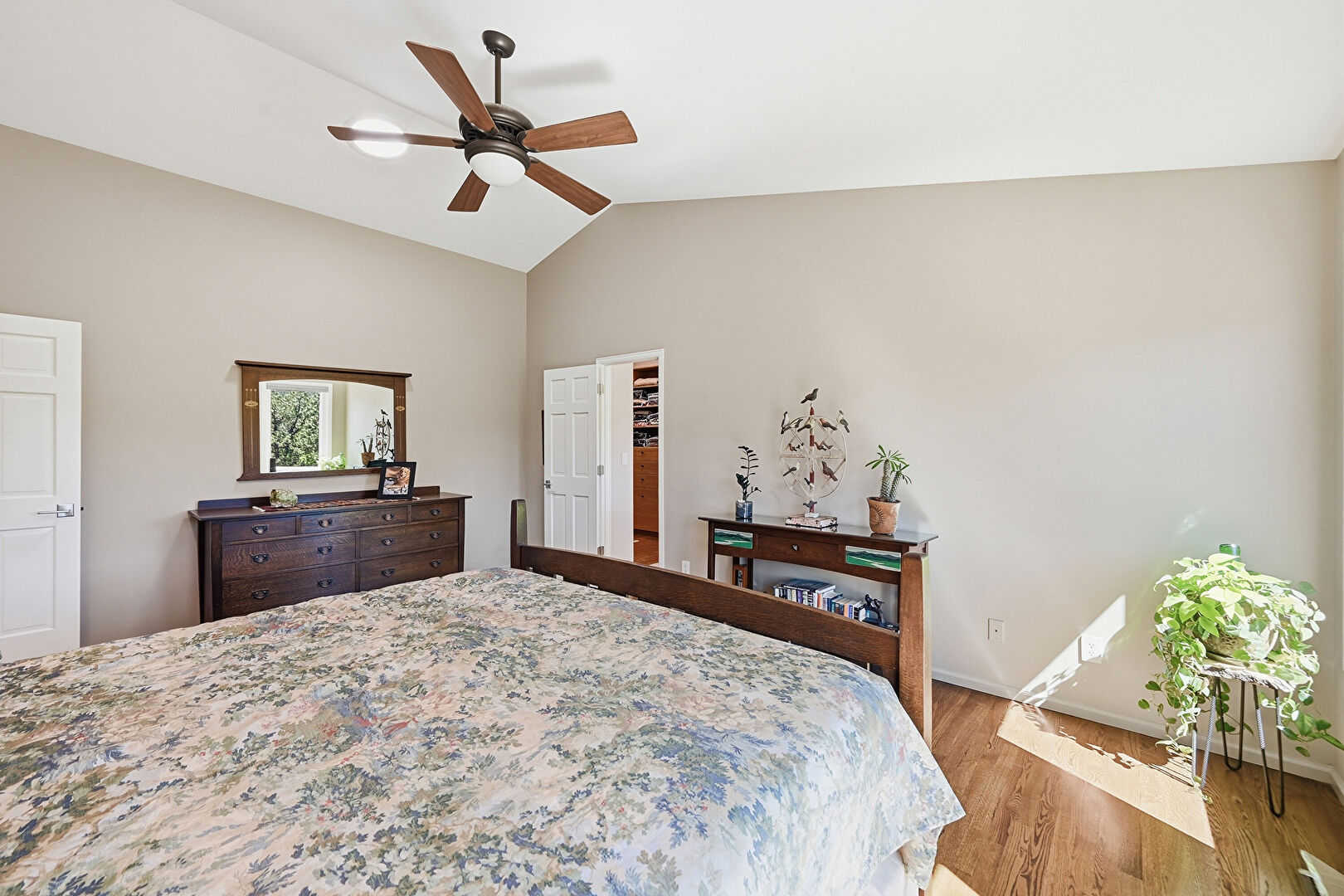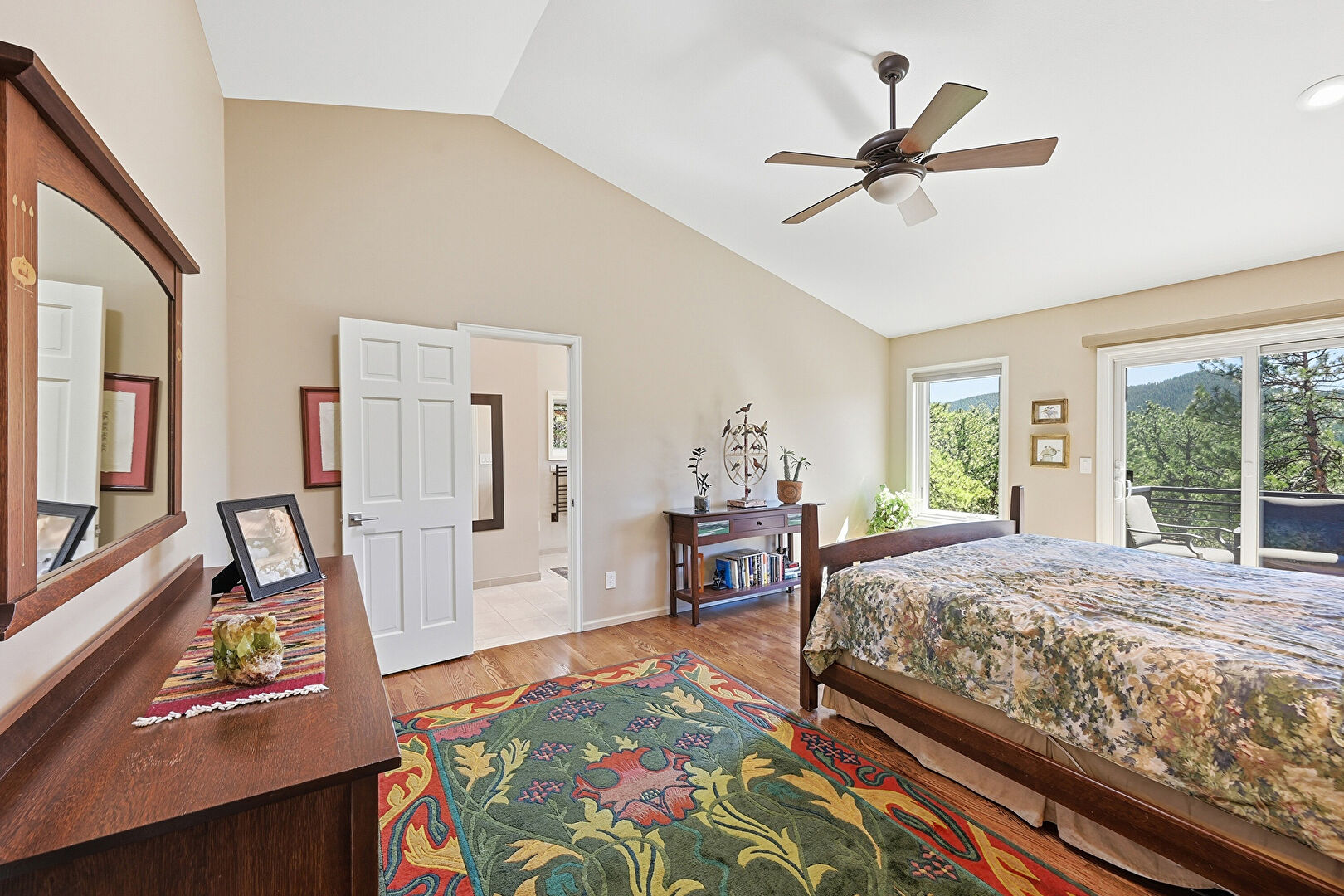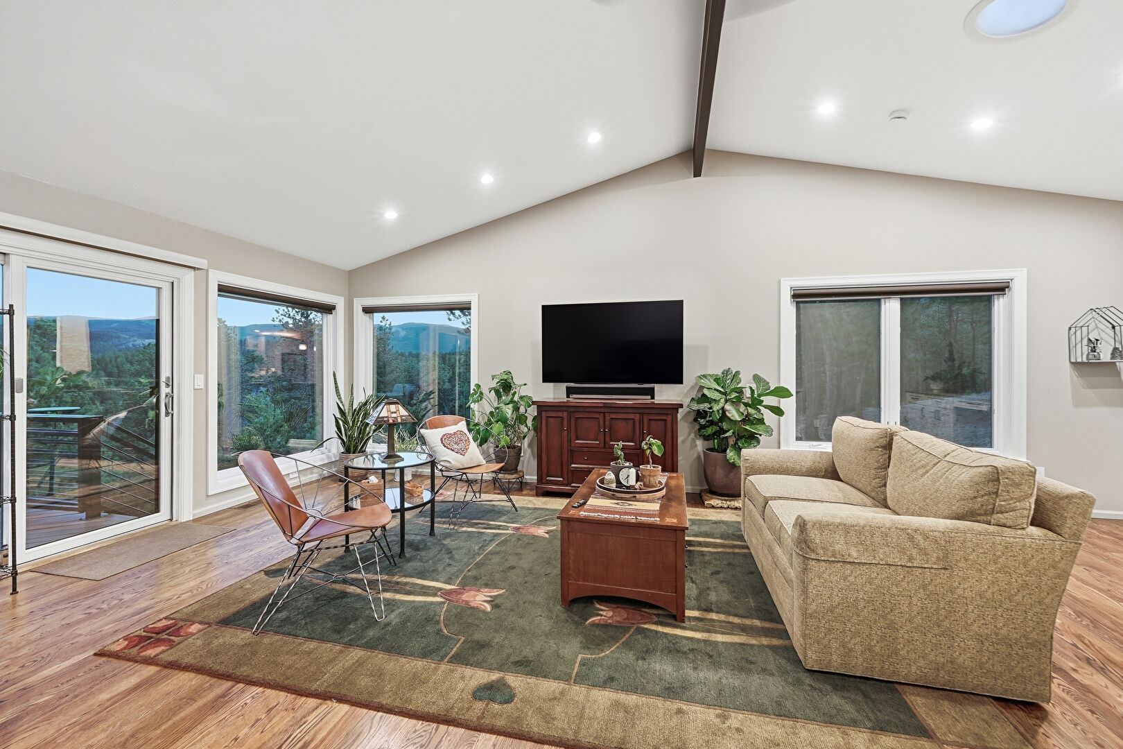 Baseboards Wall, Drywall, Mountain View, Natural Light, Wood Finish Floor, Natural Light, Vaulted Ceiling