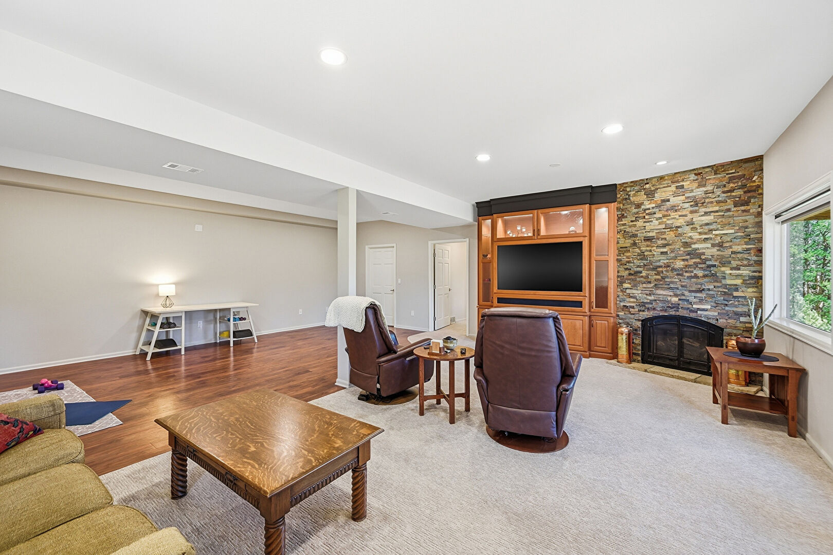 Baseboards Wall, Carpet, Drywall, Natural Light, Office Area, Vent, Wood Finish Floor, Recessed Lighting, Wood Finish Floor