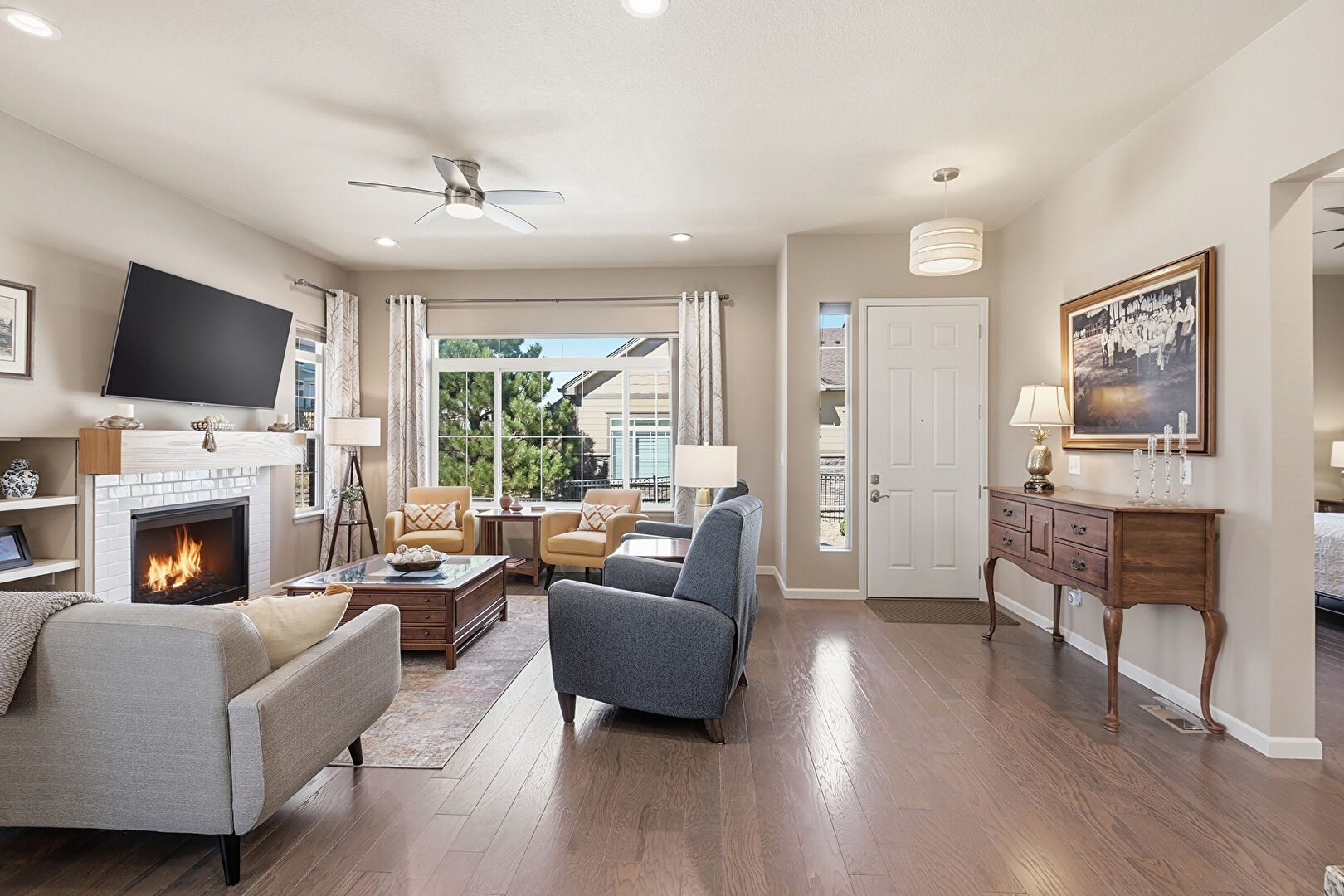Baseboards Wall, Drywall, Fireplace, Wood Finish Floor, Recessed Lighting