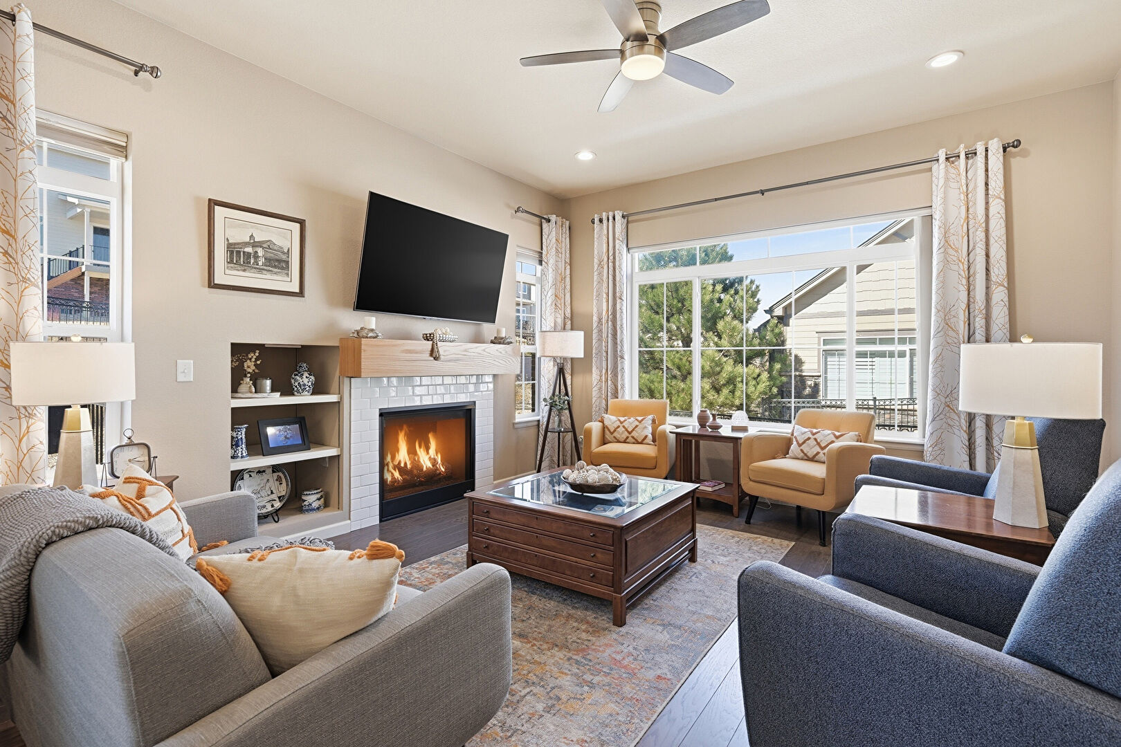 Ceiling Fan, Drywall, Fireplace, L Shaped Kitchen, Natural Light, Smoke Carbon Monoxide Detector, Wood Finish Floor, Recessed Lighting