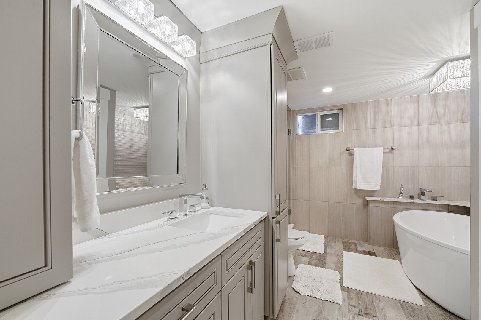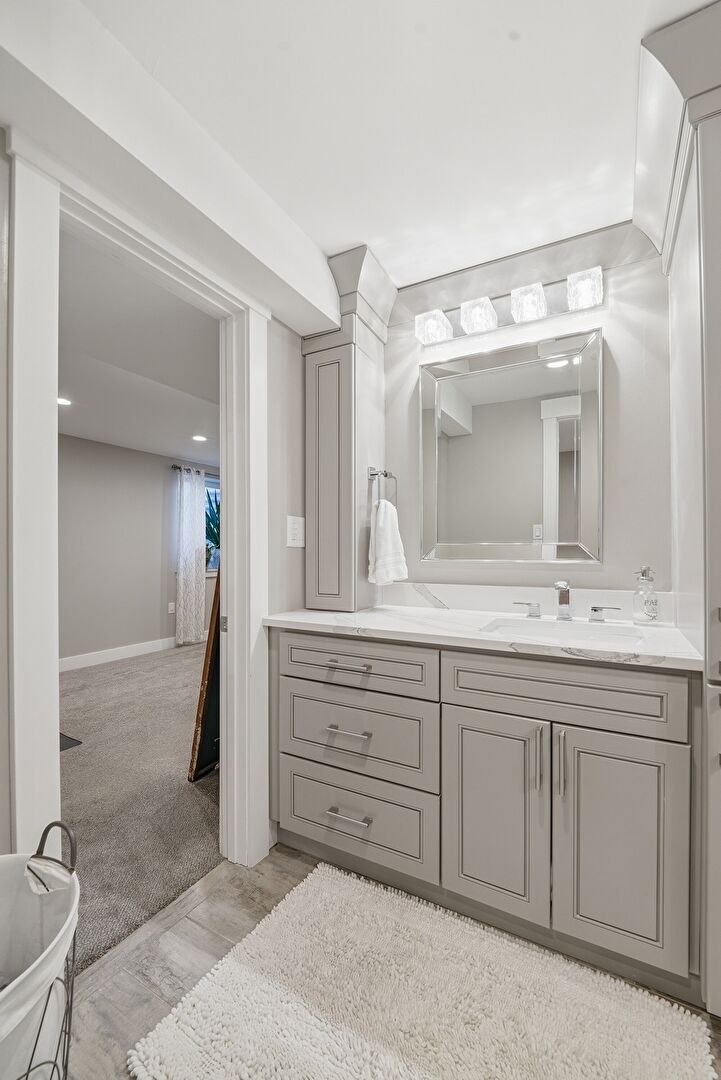 Baseboards Wall, Basement, Carpet, Combined Bath Shower, Drywall, Full Bathroom, Half Bathroom, Marble Finish Floor, Natural Light, Recessed Lighting, Tile Floor, Tile Wall, Vanity, Vent, Wood Finish Floor, Basement, Full Bathroom, Laundry, Recessed Lighting, Vanity