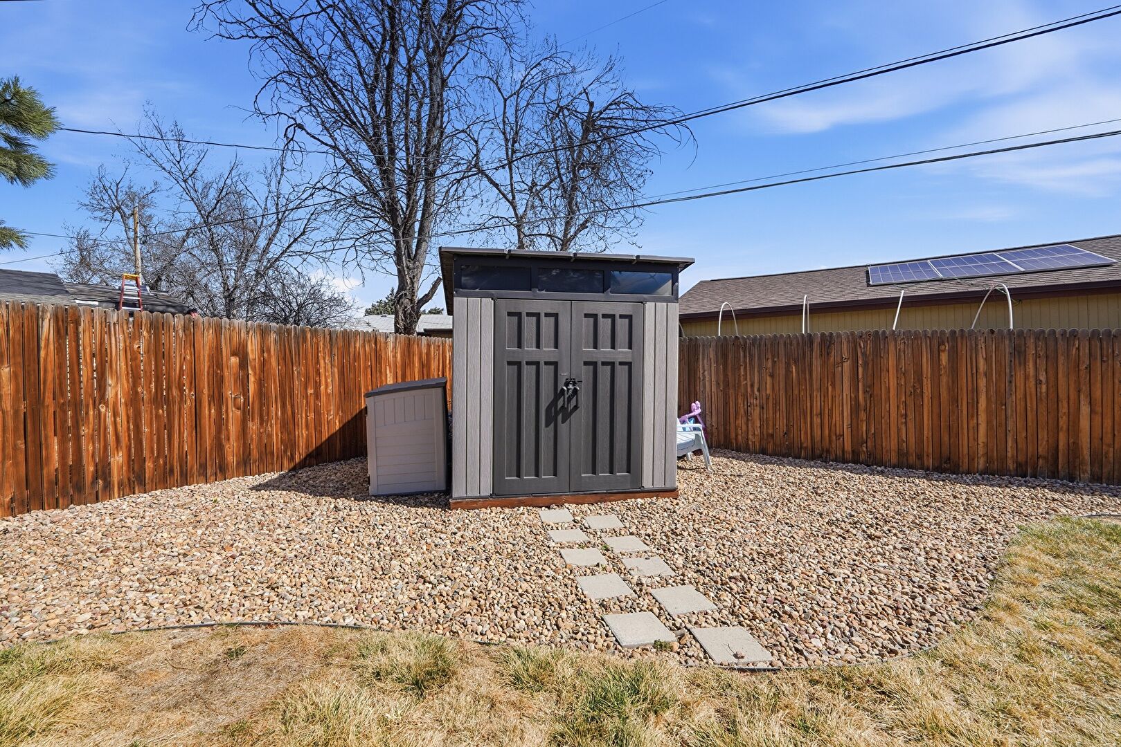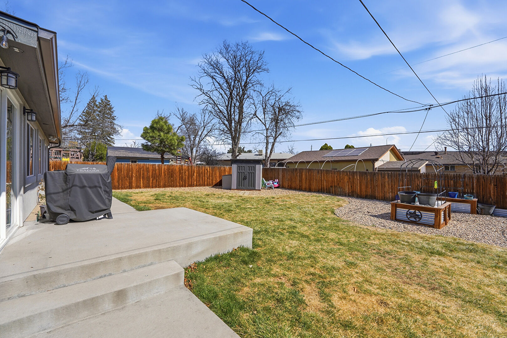 Fence, Garden, Grill, Lawn, Outdoor Structure, Patio, Shed, Fence, Outdoor Living Space, Outdoor Structure