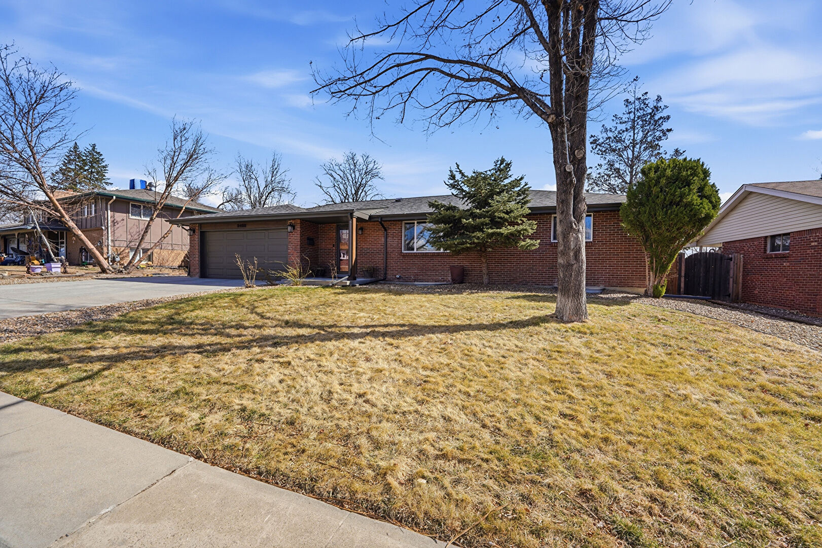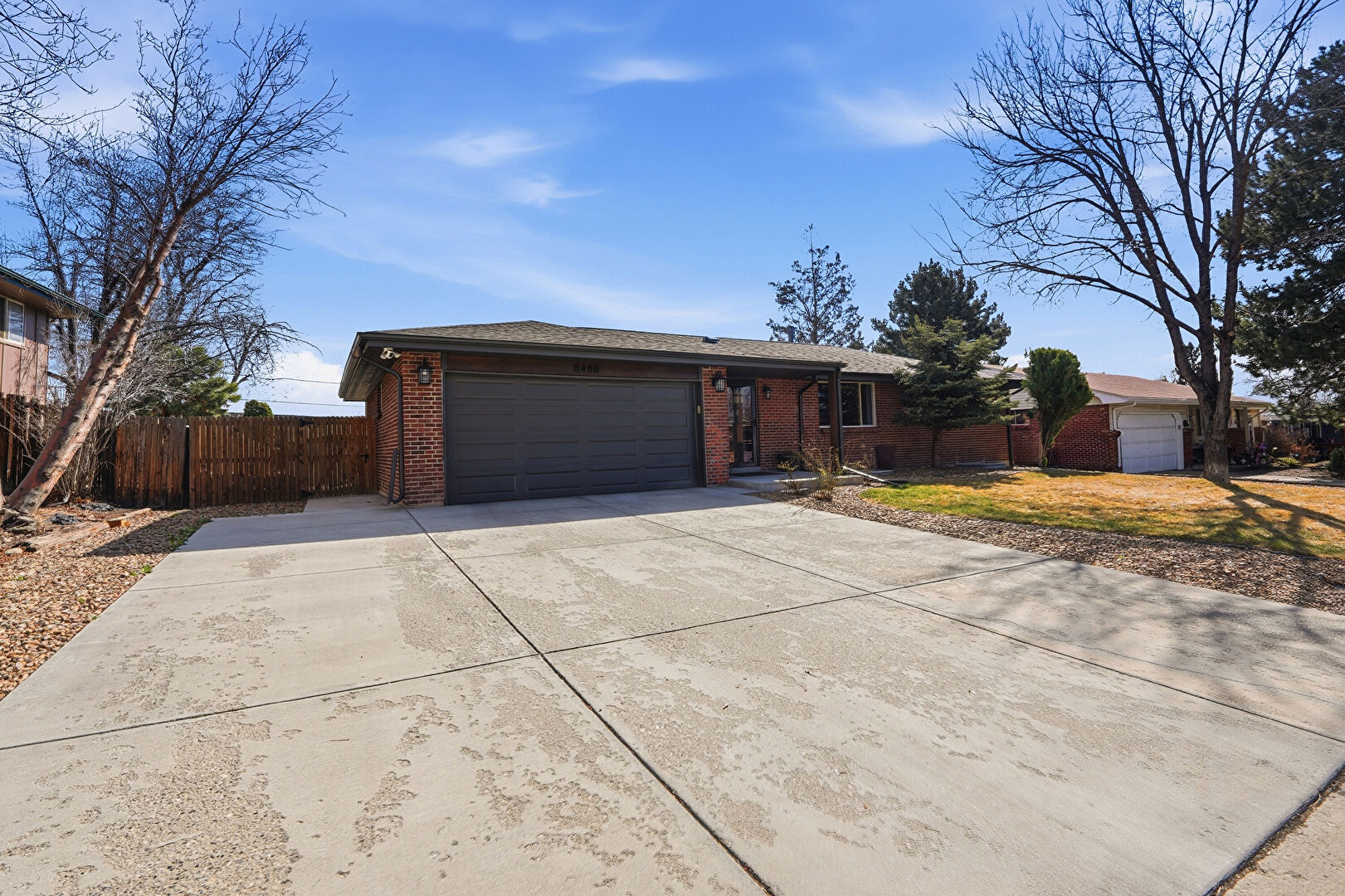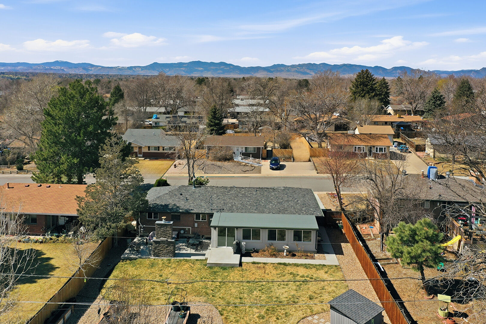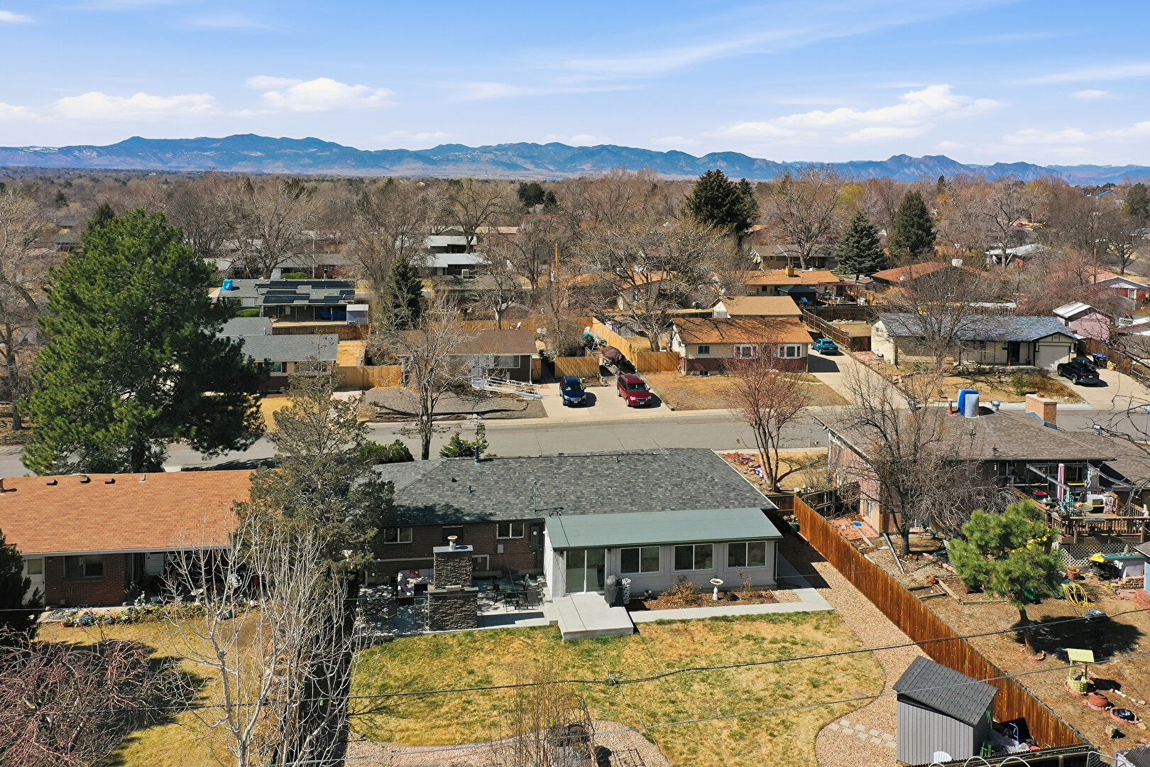 Brick Siding, Concrete Foundation, Downspout, Driveway, Fence, Lawn, Mountain View, Parking Pad, Residential View, Shingle Roof, Concrete Foundation, Driveway, Fence, Mountain View, Parking Pad, Residential View