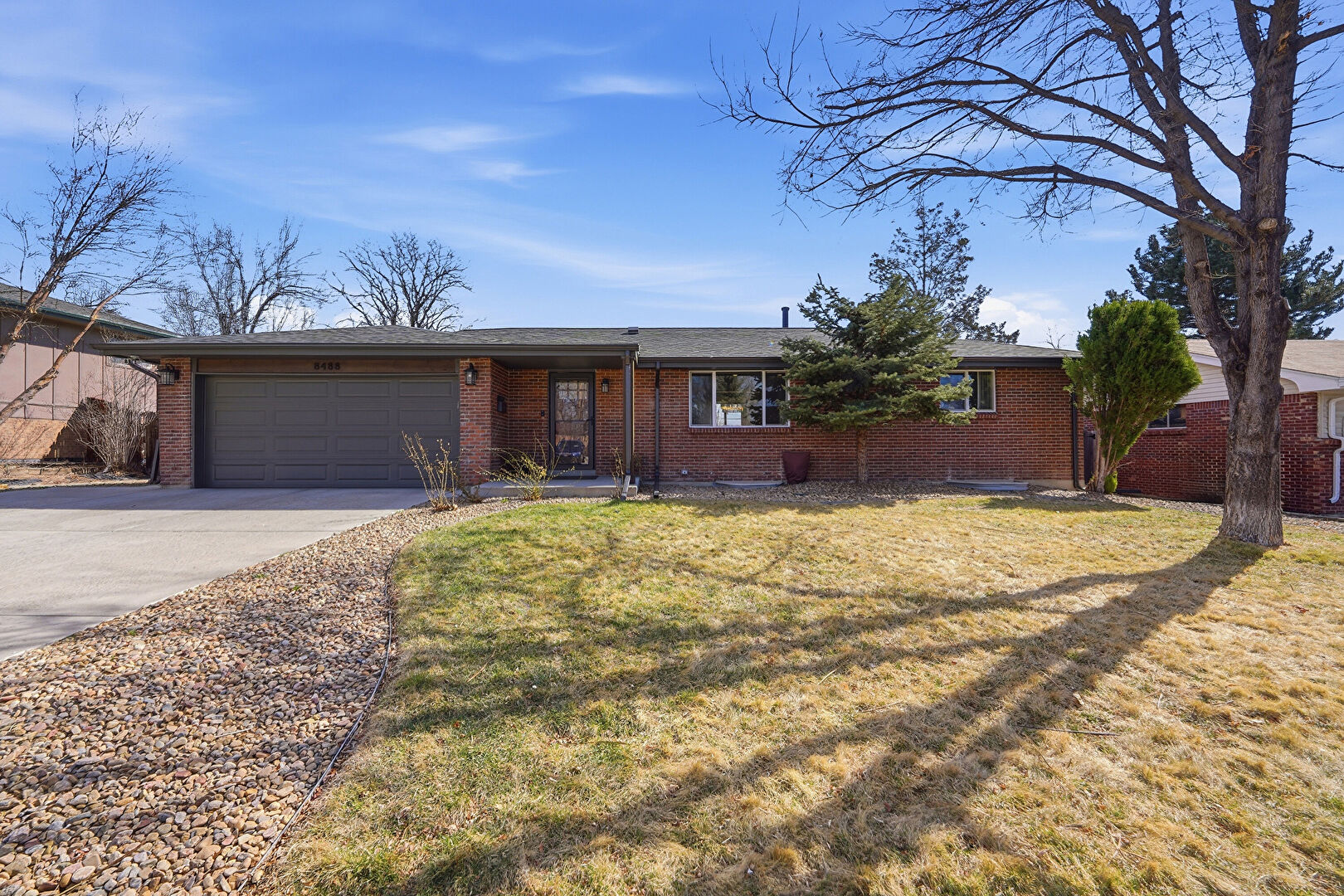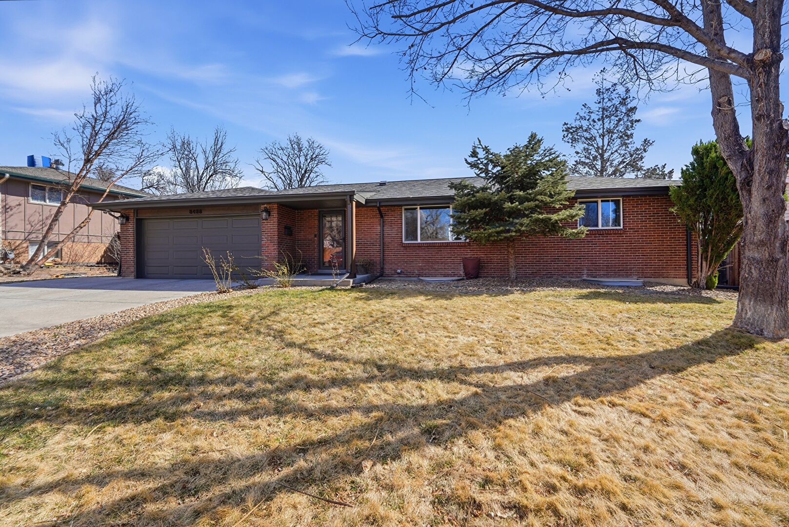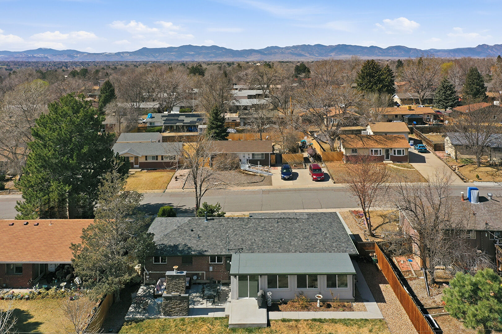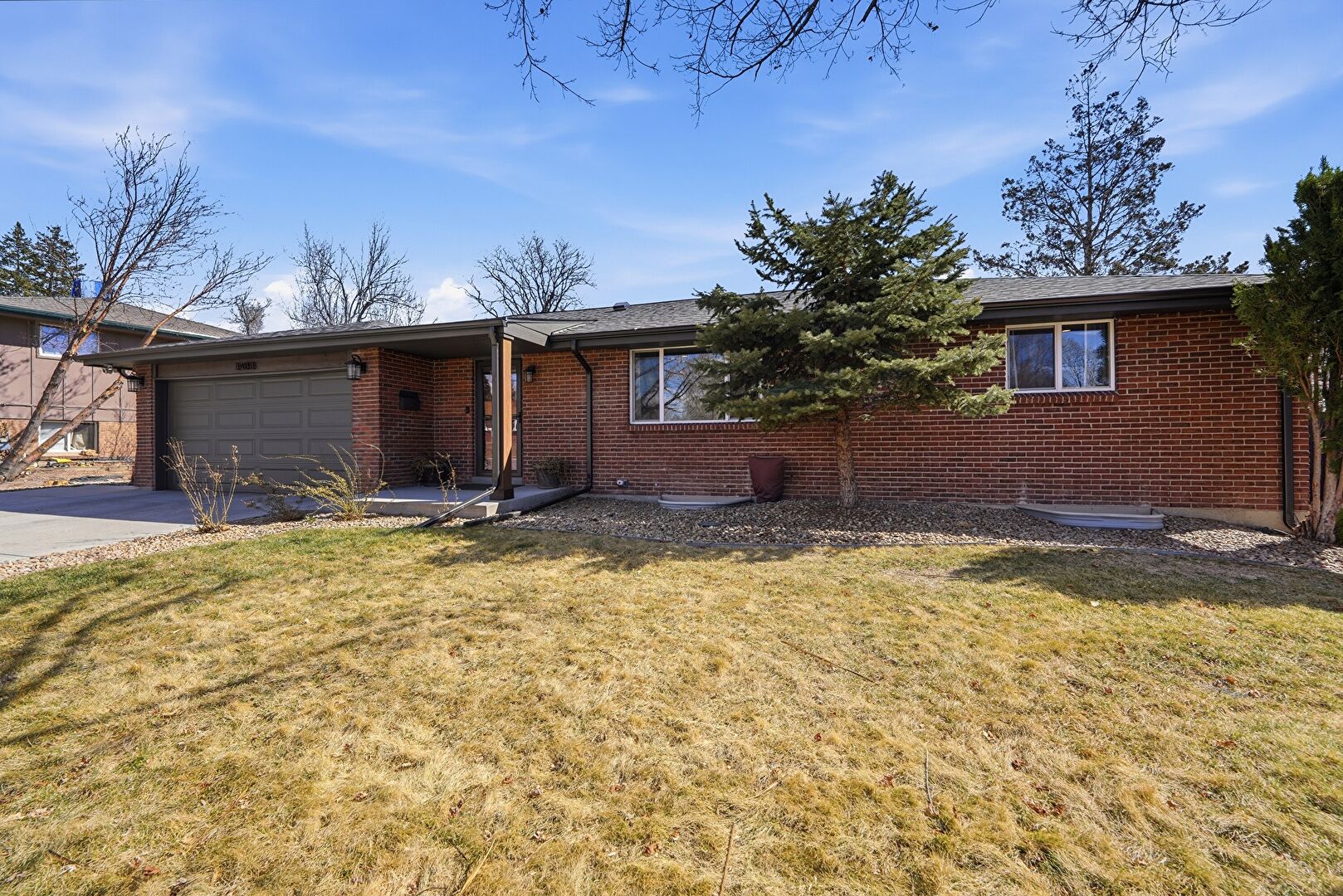 Brick Siding, Concrete Foundation, Downspout, Driveway, Fence, Lawn, Mountain View, Parking Pad, Residential View, Shingle Roof, Concrete Foundation, Driveway, Fence, Mountain View, Parking Pad, Residential View