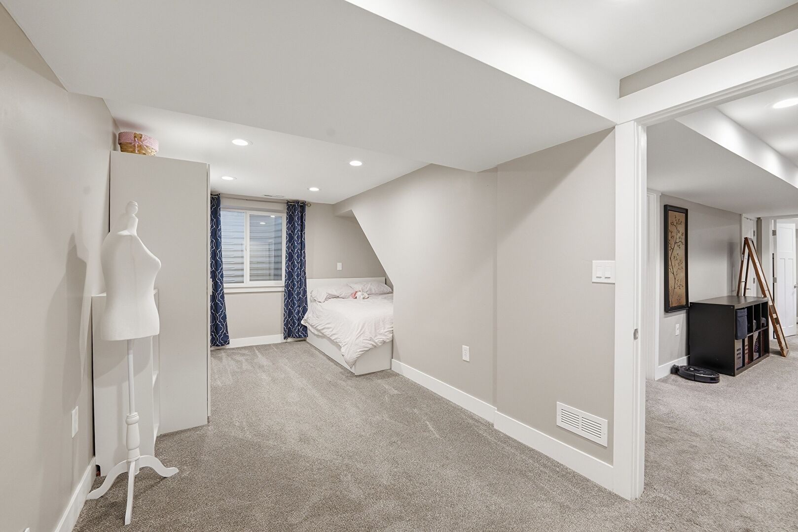 Baseboards Wall, Basement, Carpet, Drywall, Recessed Lighting, Vent, Natural Light, Recessed Lighting
