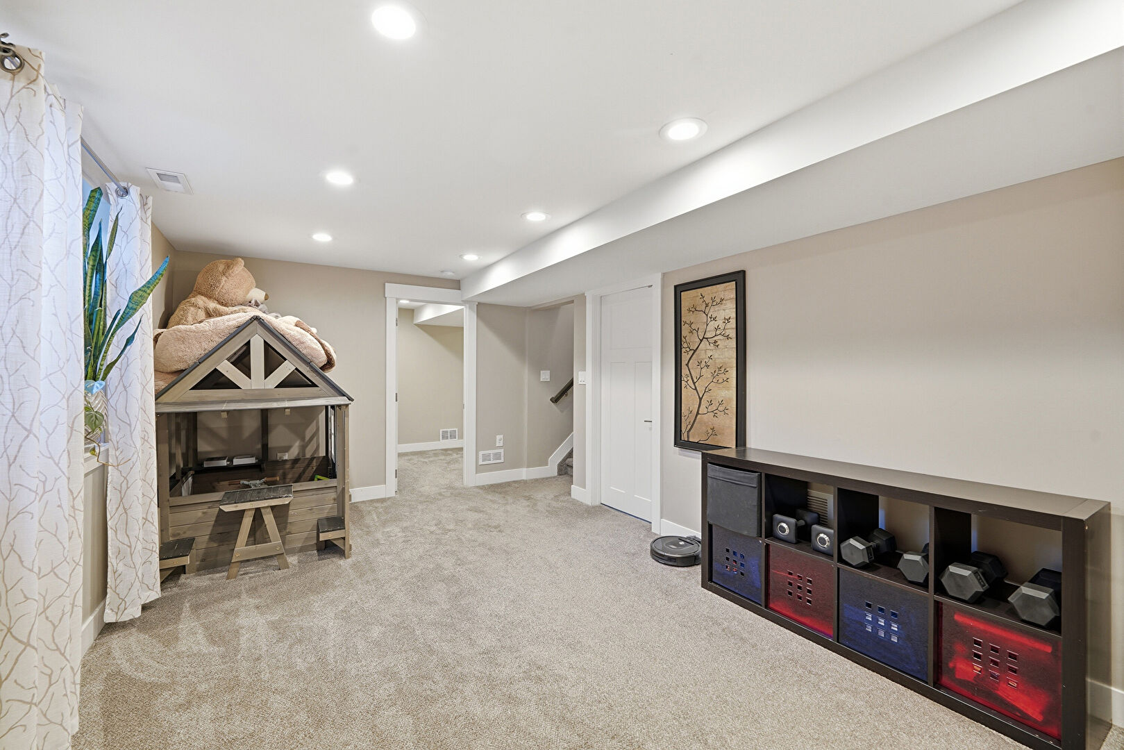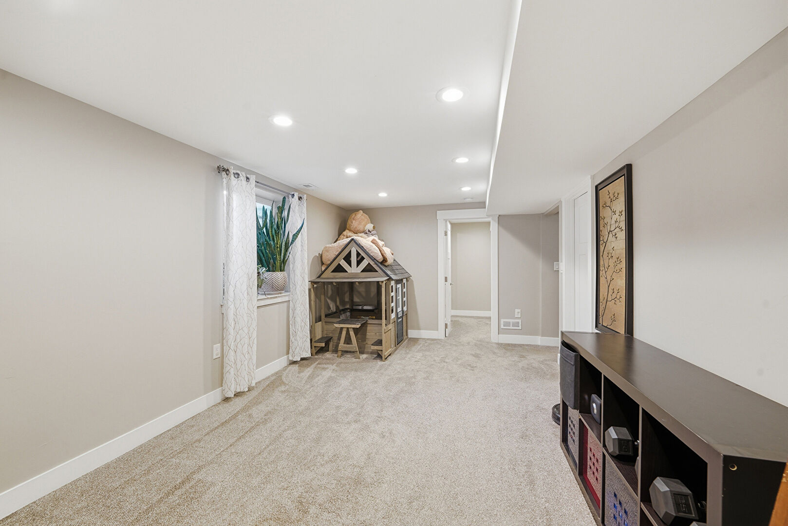 Baseboards Wall, Basement, Carpet, Drywall, Natural Light, Recessed Lighting, Vent, Carpet, Recessed Lighting