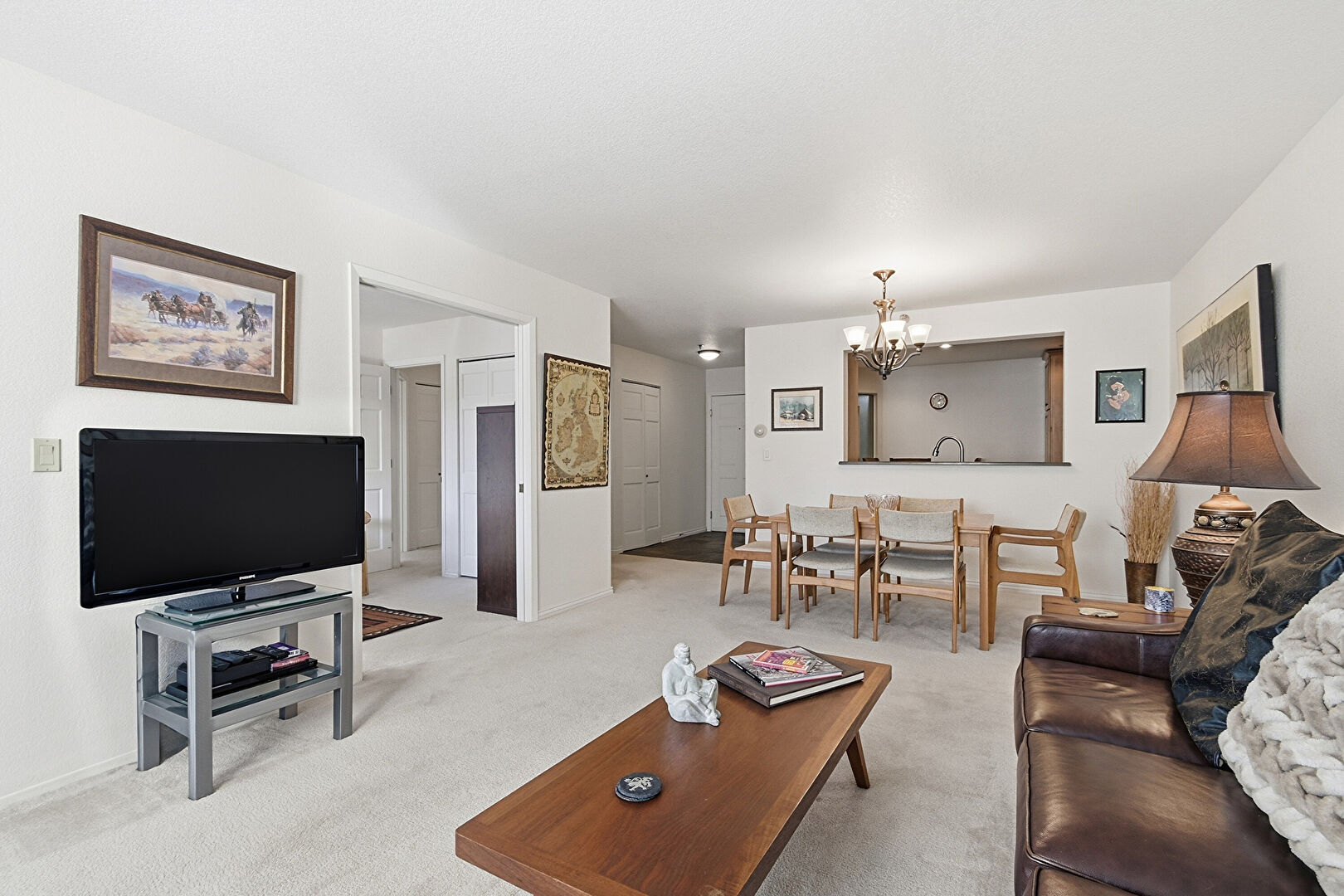 Baseboards Wall, Carpet, Drywall, Fireplace, Natural Light, Notable Chandelier, Baseboards Wall, Drywall, Fireplace, Notable Chandelier