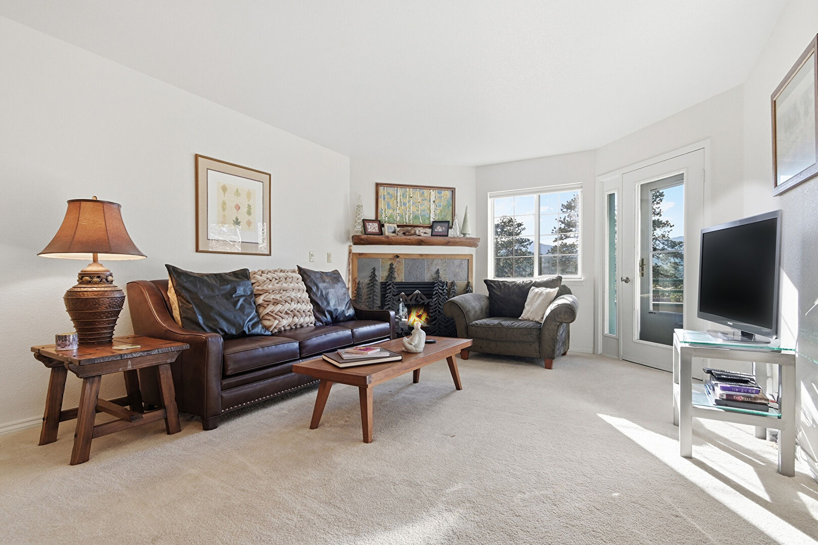 Baseboards Wall, Carpet, Drywall, Fireplace, Natural Light, Notable Chandelier, Recessed Lighting, Stone Finish Floor, Carpet, Drywall