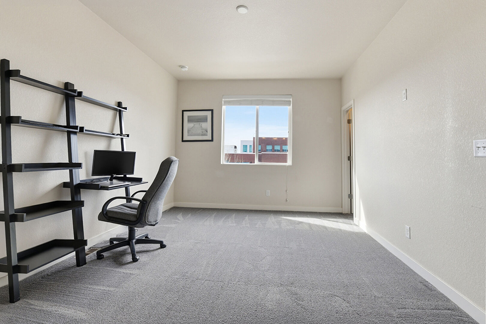 Carpet, Natural Light, Office Area, Textured Wall, Baseboards Wall