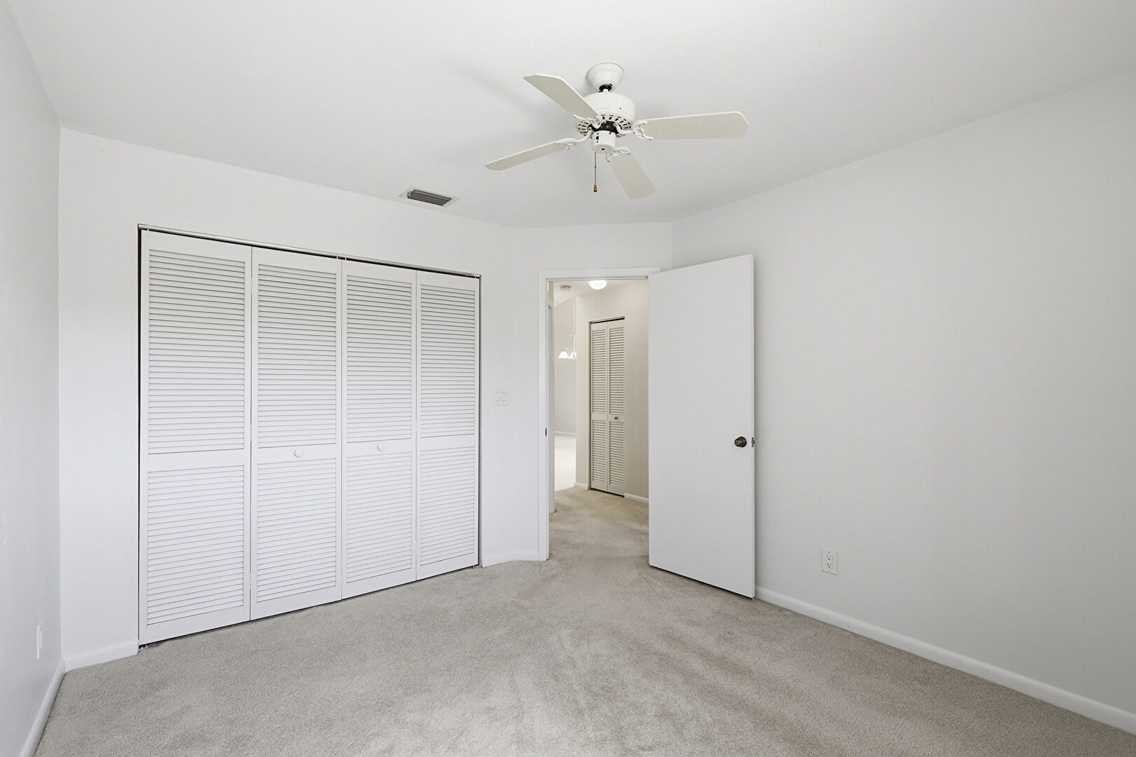 Baseboards Wall, Carpet, Ceiling Fan, Closet, Drywall, Natural Light, Vent, Baseboards Wall, Carpet, Ceiling Fan
