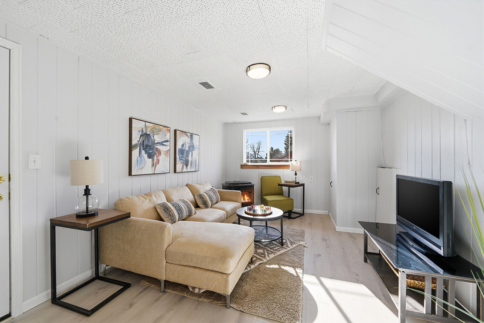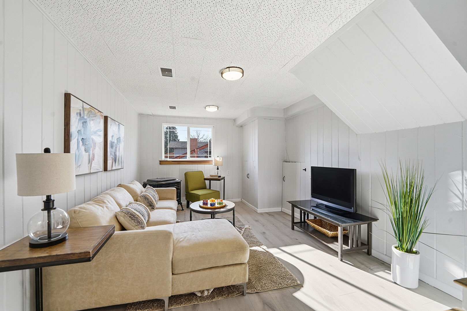 Baseboards Wall, Drywall, Natural Light, Textured Ceiling, Vent, Wood Finish Floor, Wood Wall, Vent, Wood Finish Floor, Wood Wall