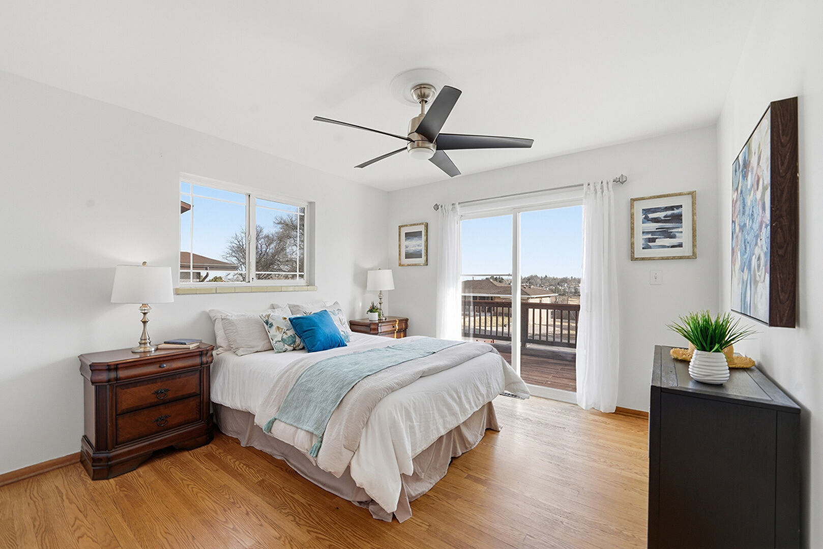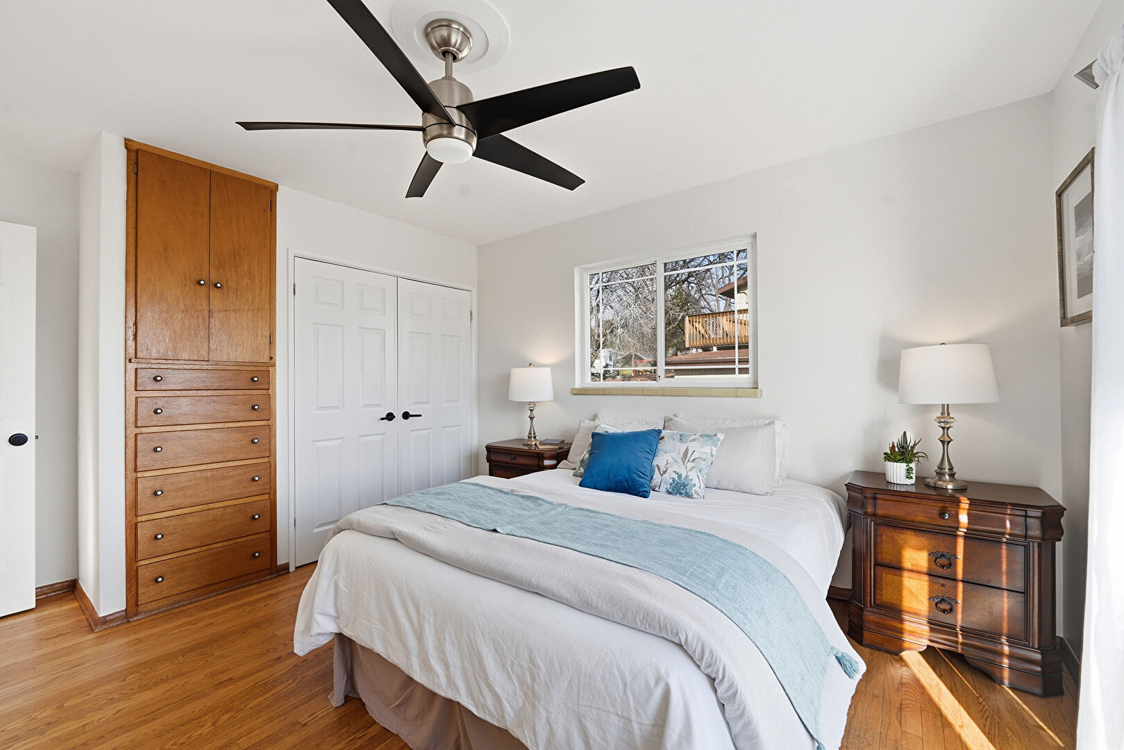 Access To Exterior, Baseboards Wall, Ceiling Fan, Drywall, Natural Light, Wood Finish Floor, Baseboards Wall, Closet
