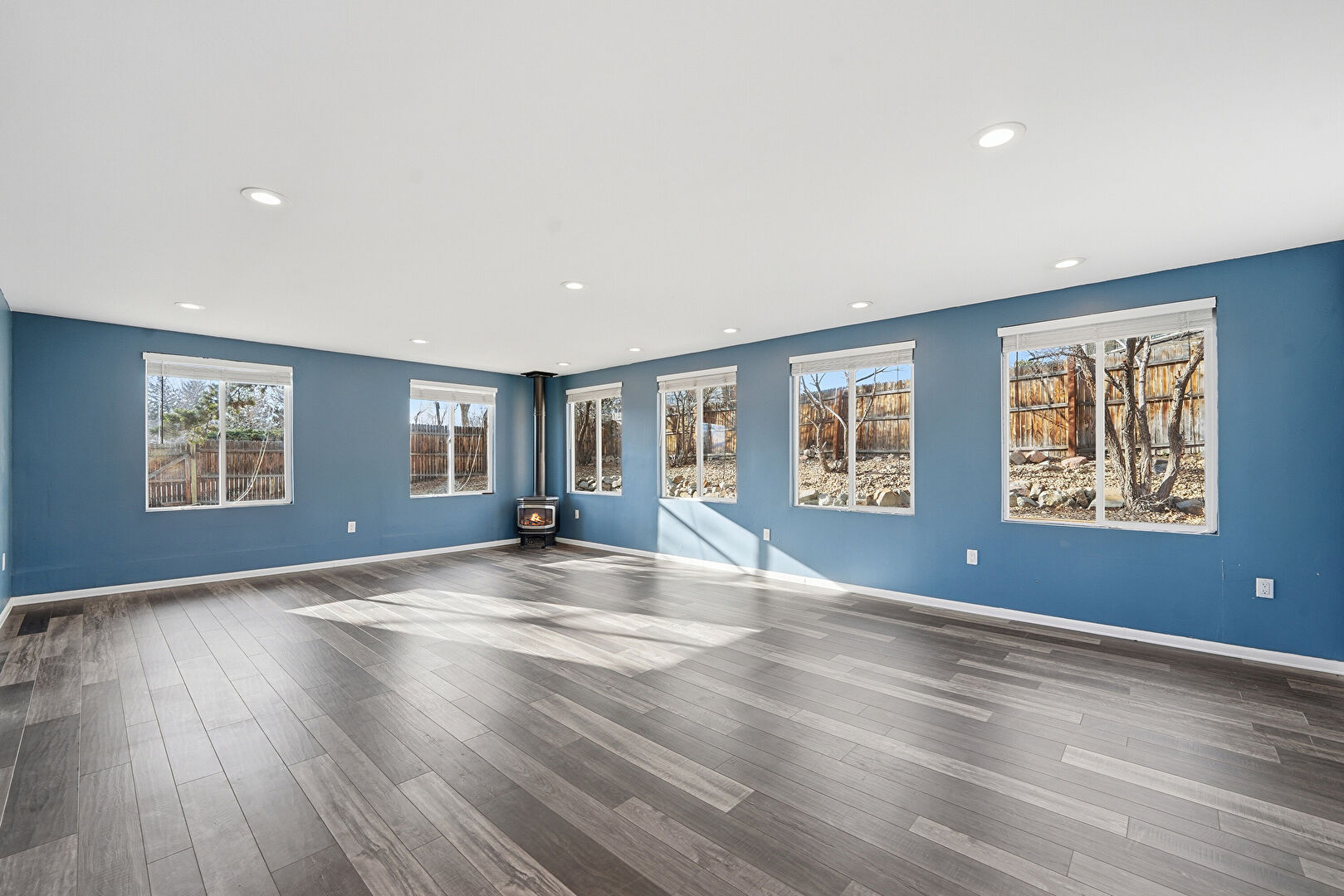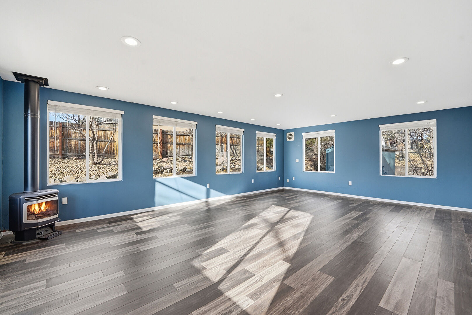 Baseboards Wall, Drywall, Recessed Lighting, Wood Finish Floor, Wood Stove, Natural Light