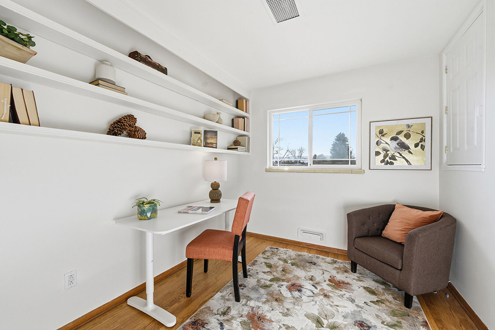 Baseboards Wall, Natural Light, Office Area, Vent, Wood Finish Floor, Drywall