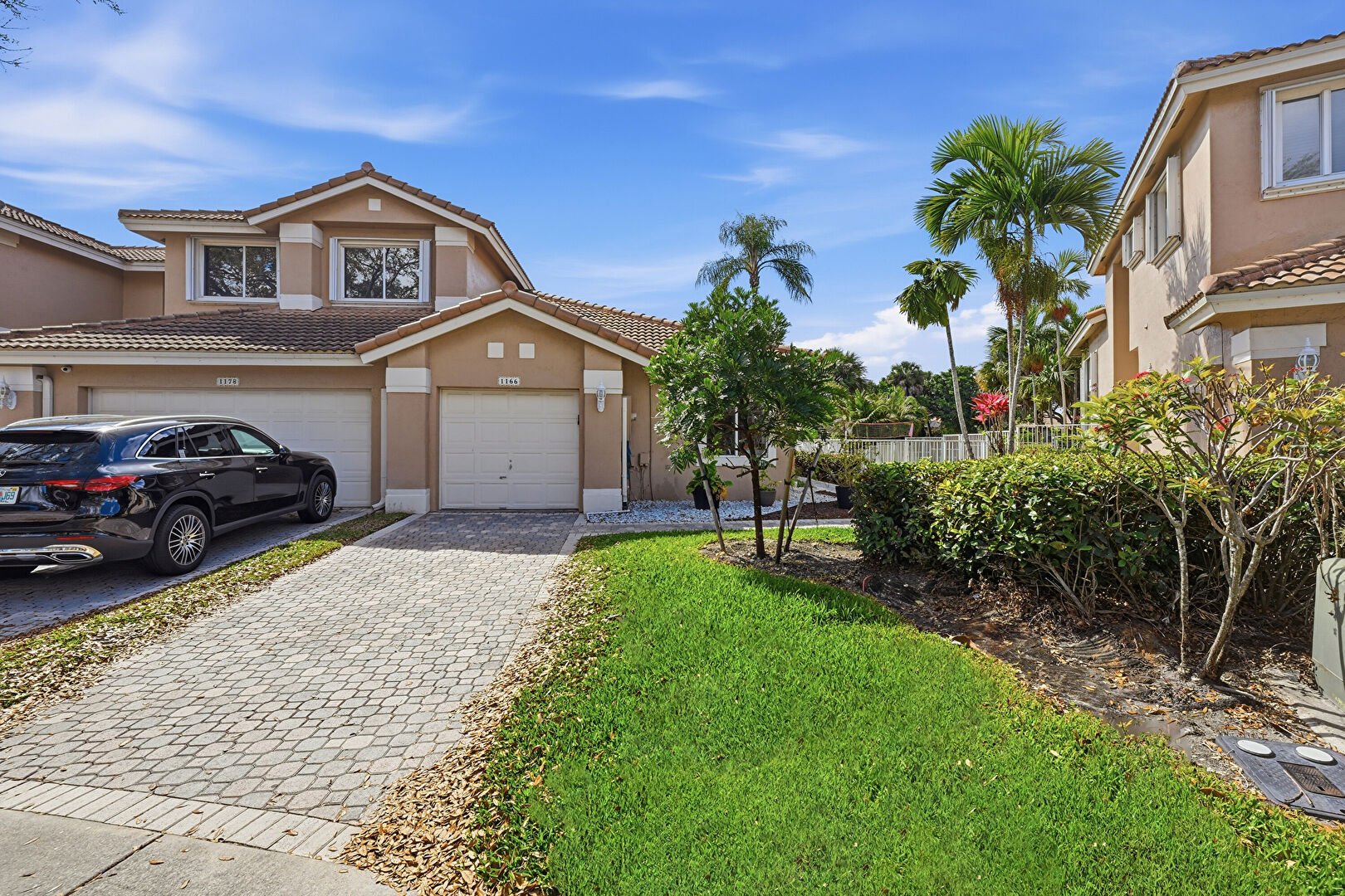 Driveway, Fence, Lawn, Stucco Siding, Tile Roof, Driveway, Tile Roof
