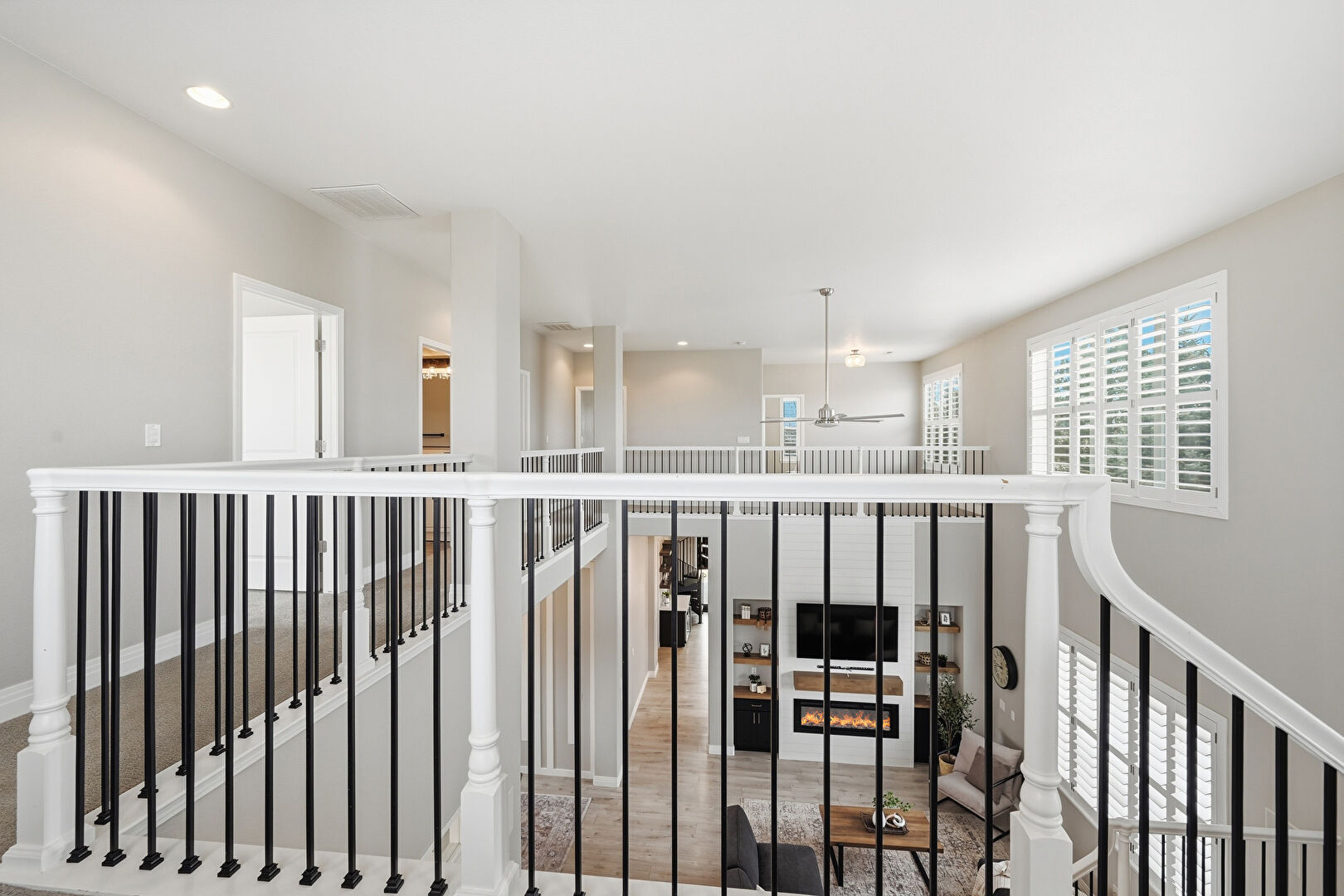 Baseboards Wall, Drywall, Loft, Natural Light, Upstairs Landing, Vent, Wood Finish Floor, Carpet, Recessed Lighting