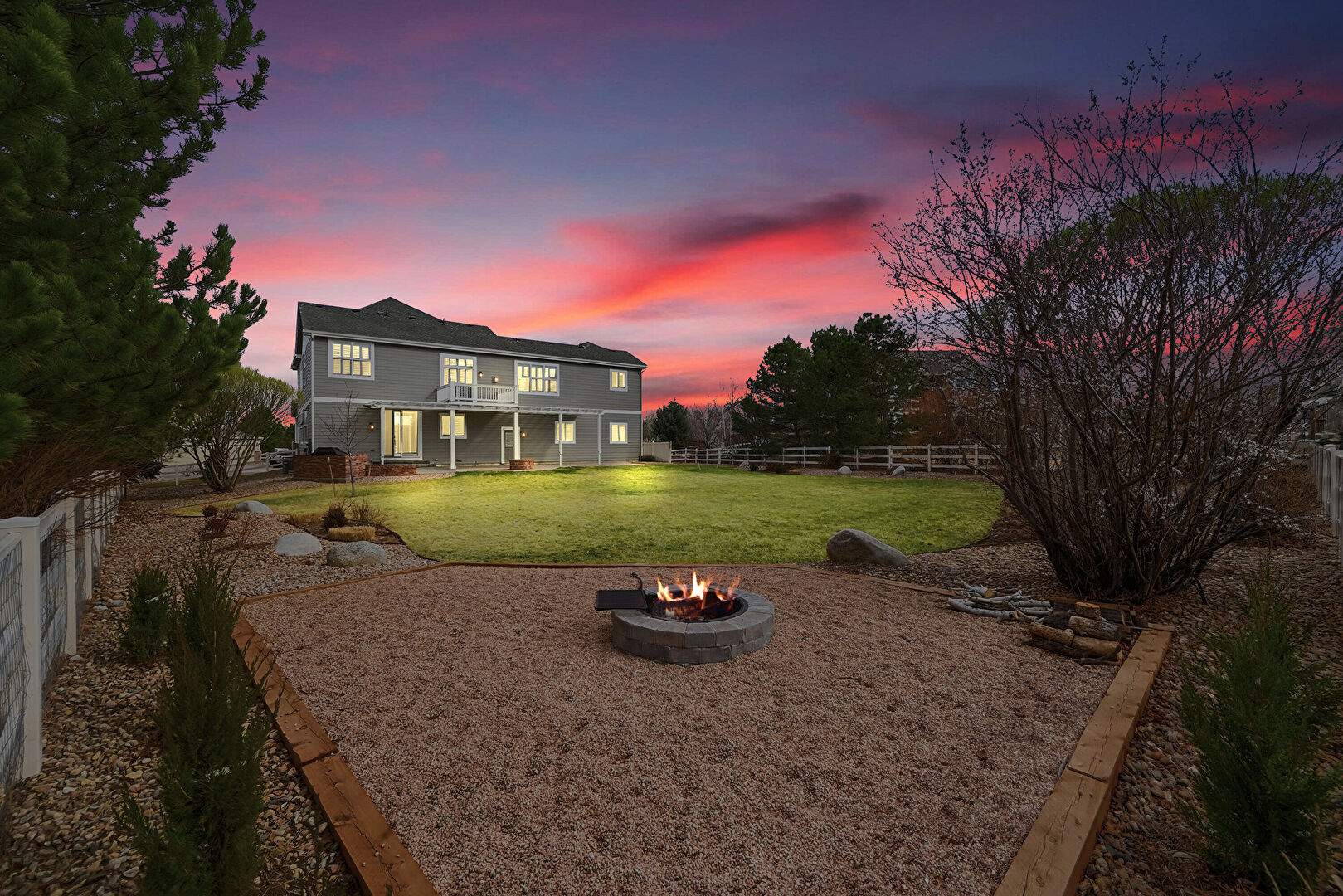 Fence, Fire Pit, Lawn, Patio