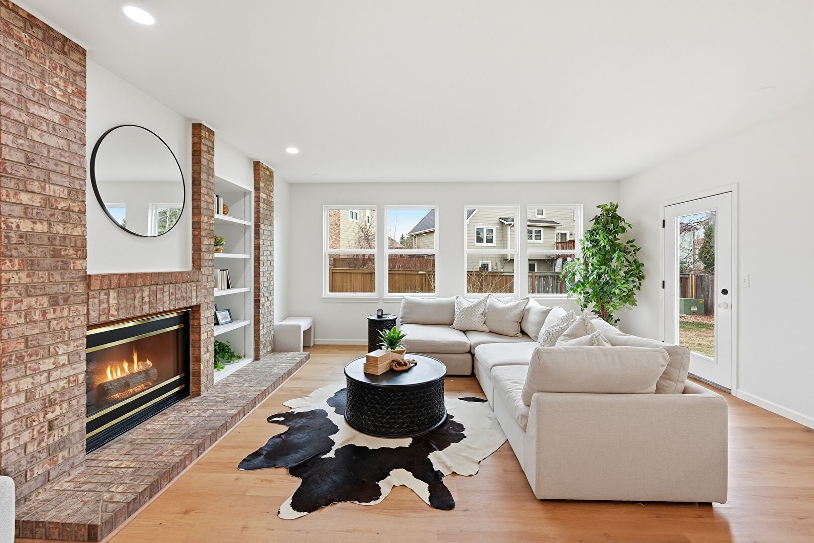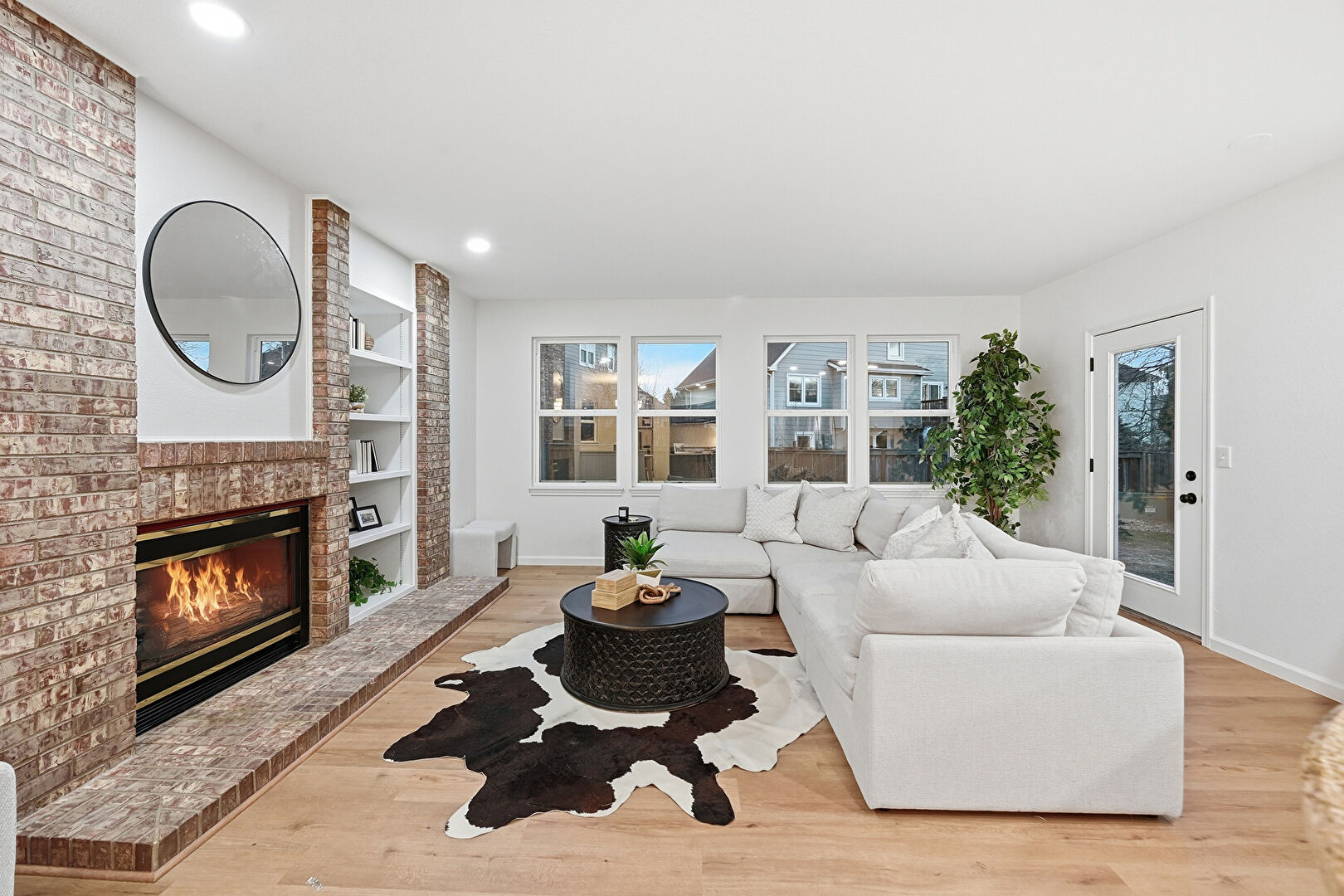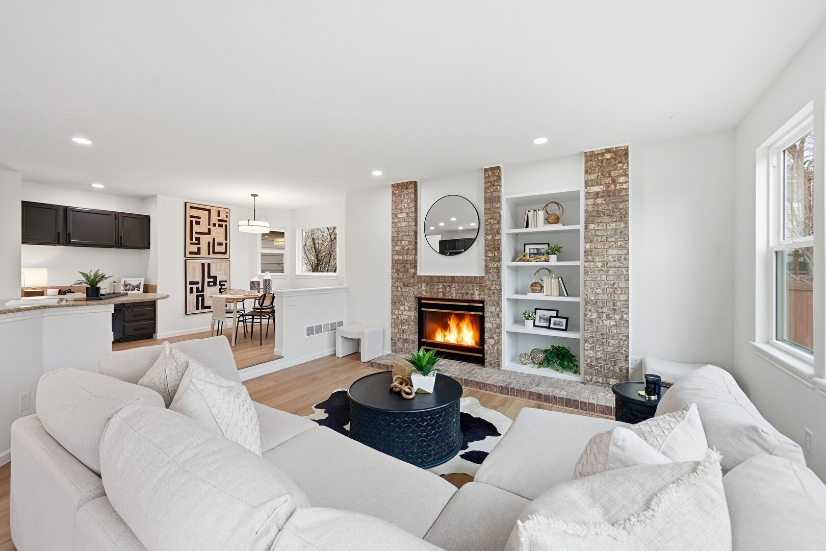 Baseboards Wall, Built In Shelves, Drywall, Fireplace, Natural Light, Recessed Lighting, Vent, Wood Finish Floor, Baseboards Wall, Fireplace, Natural Light, Wood Finish Floor