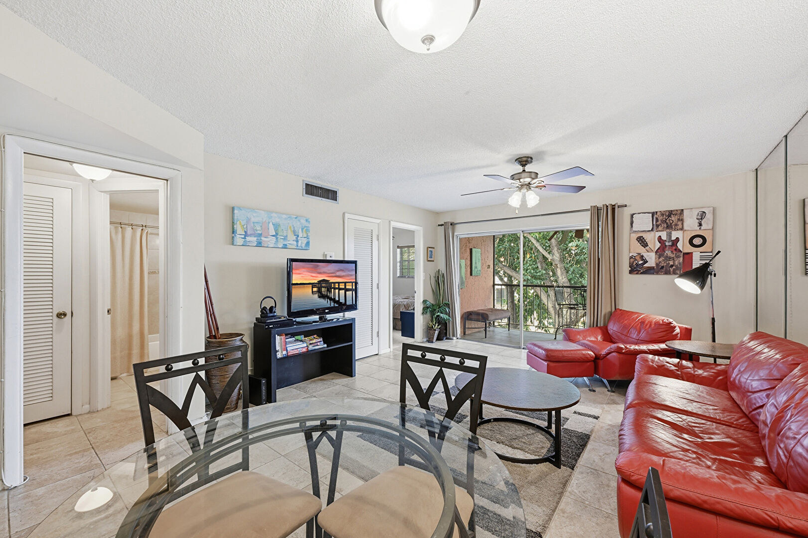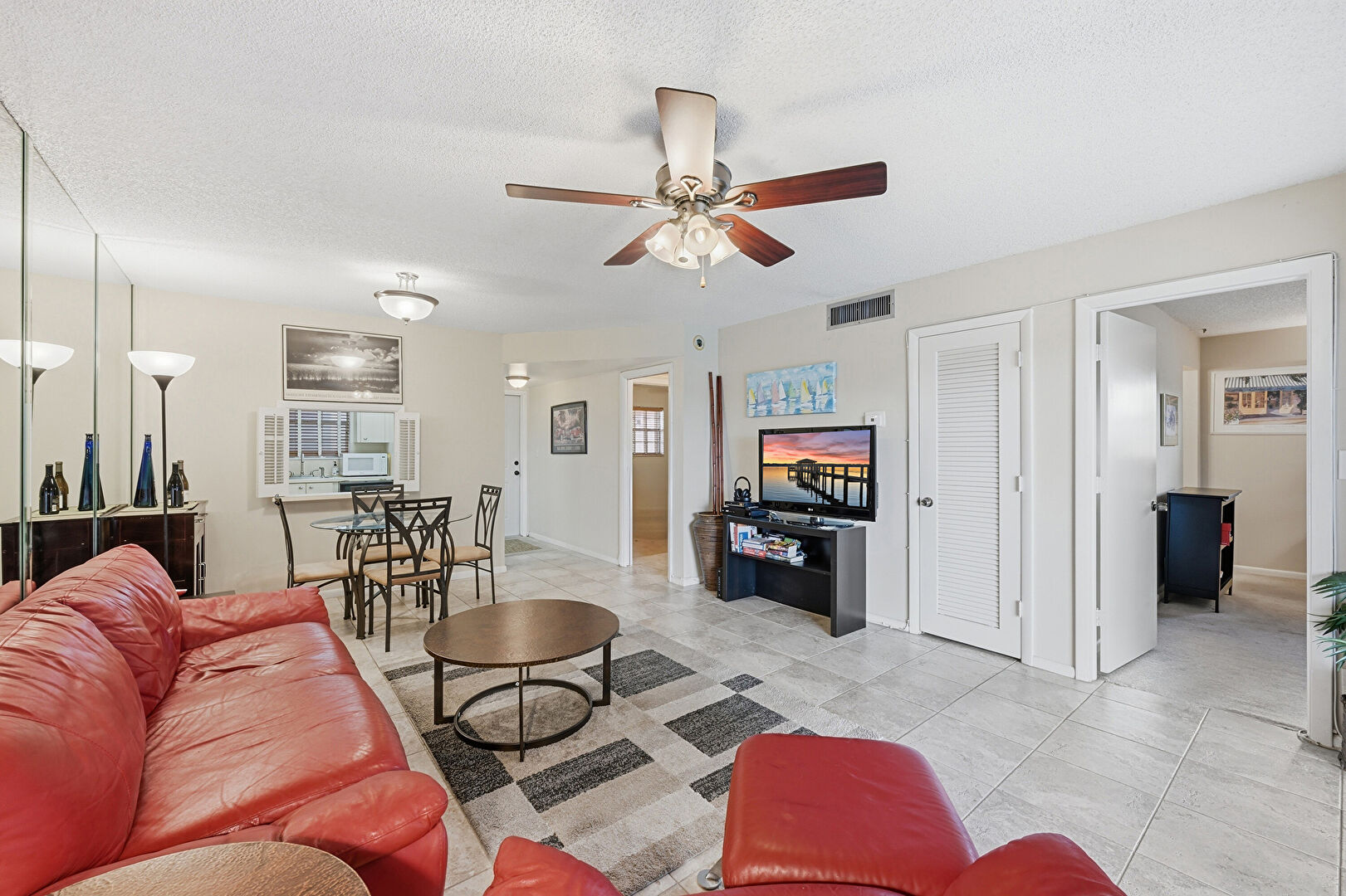 Baseboards Wall, Ceiling Fan, Drywall, Natural Light, Textured Ceiling, Tile Floor, Vent, Baseboards Wall, Textured Ceiling, Vent