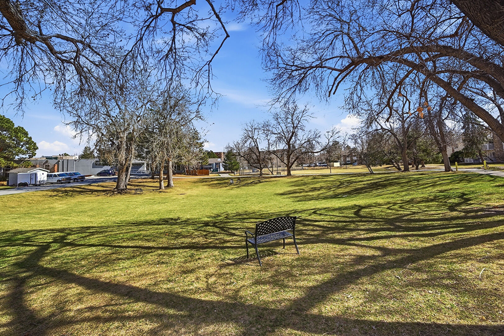 Chimney, Horizontal Siding, Lawn, Parking Pad, Patio, Pool, Stone Siding, Fence, Park View