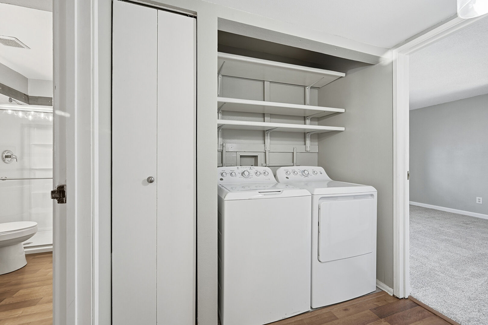 Baseboards Wall, Drywall, Vent, Washer Hookup, Wood Finish Floor, Laundry
