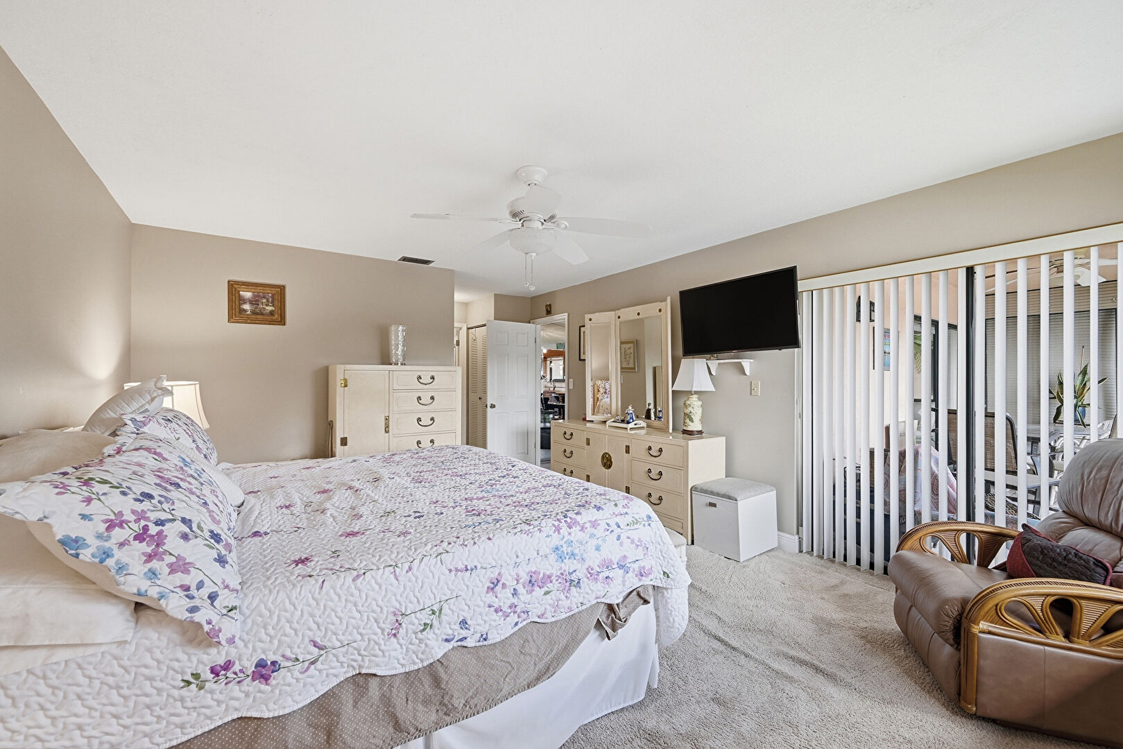 Access To Exterior, Baseboards Wall, Carpet, Ceiling Fan, Closet, Drywall, Natural Light, Vent, Carpet, Ensuite Bathroom, Natural Light