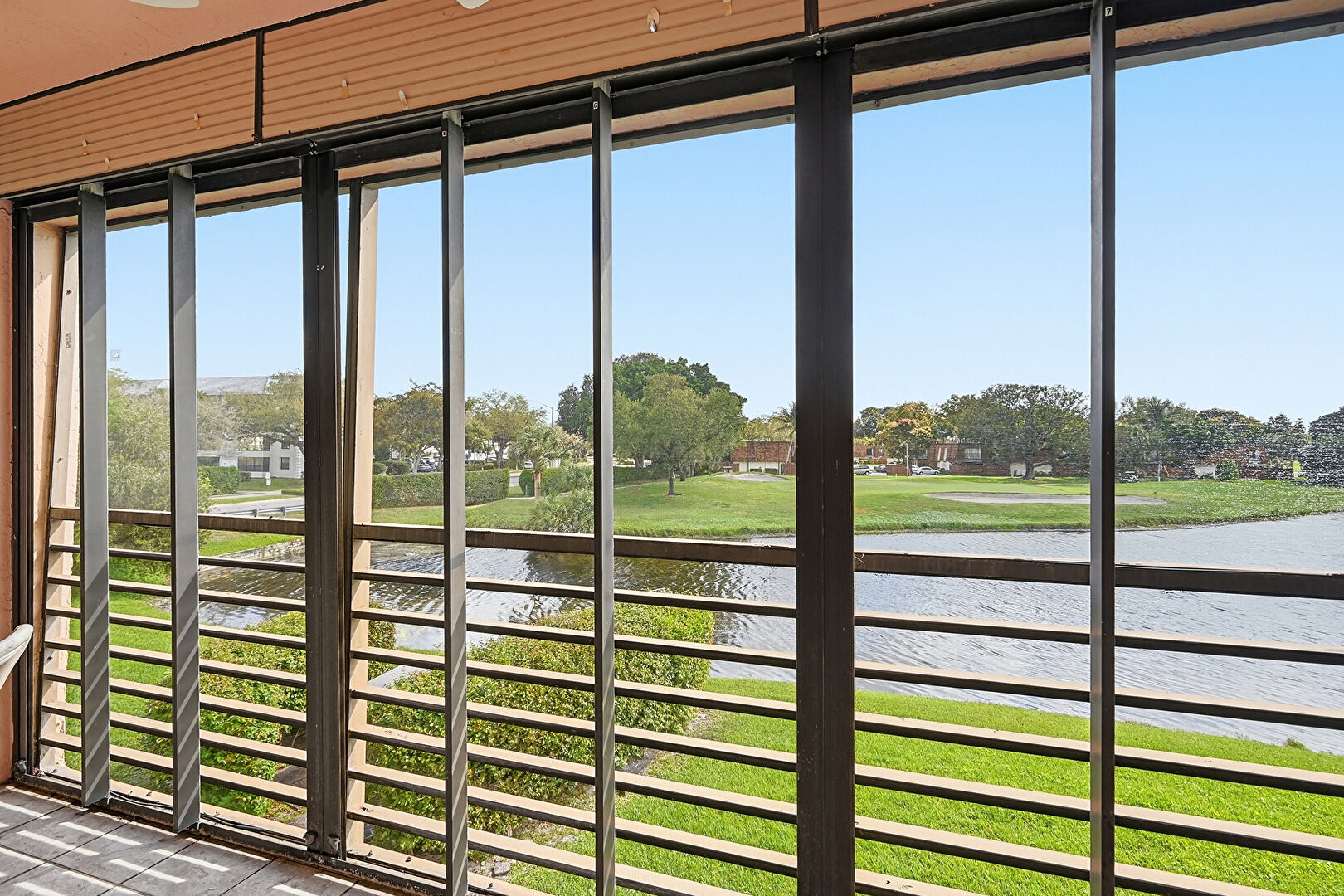 Floor Ceiling Windows, Natural Light, Pondfront, Textured Ceiling, Tile Floor, Water View, Waterfront, Natural Light, Water View, Waterfront