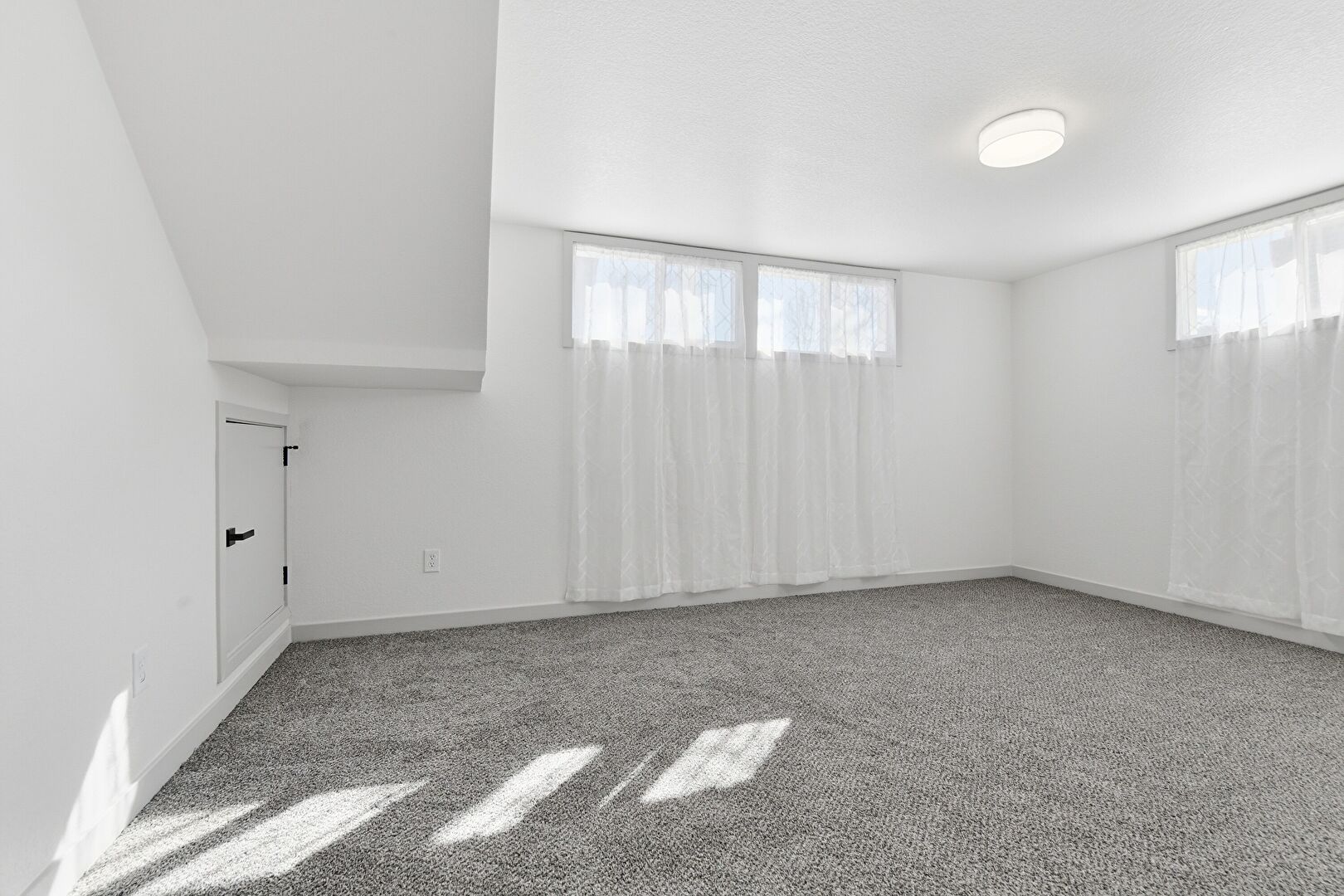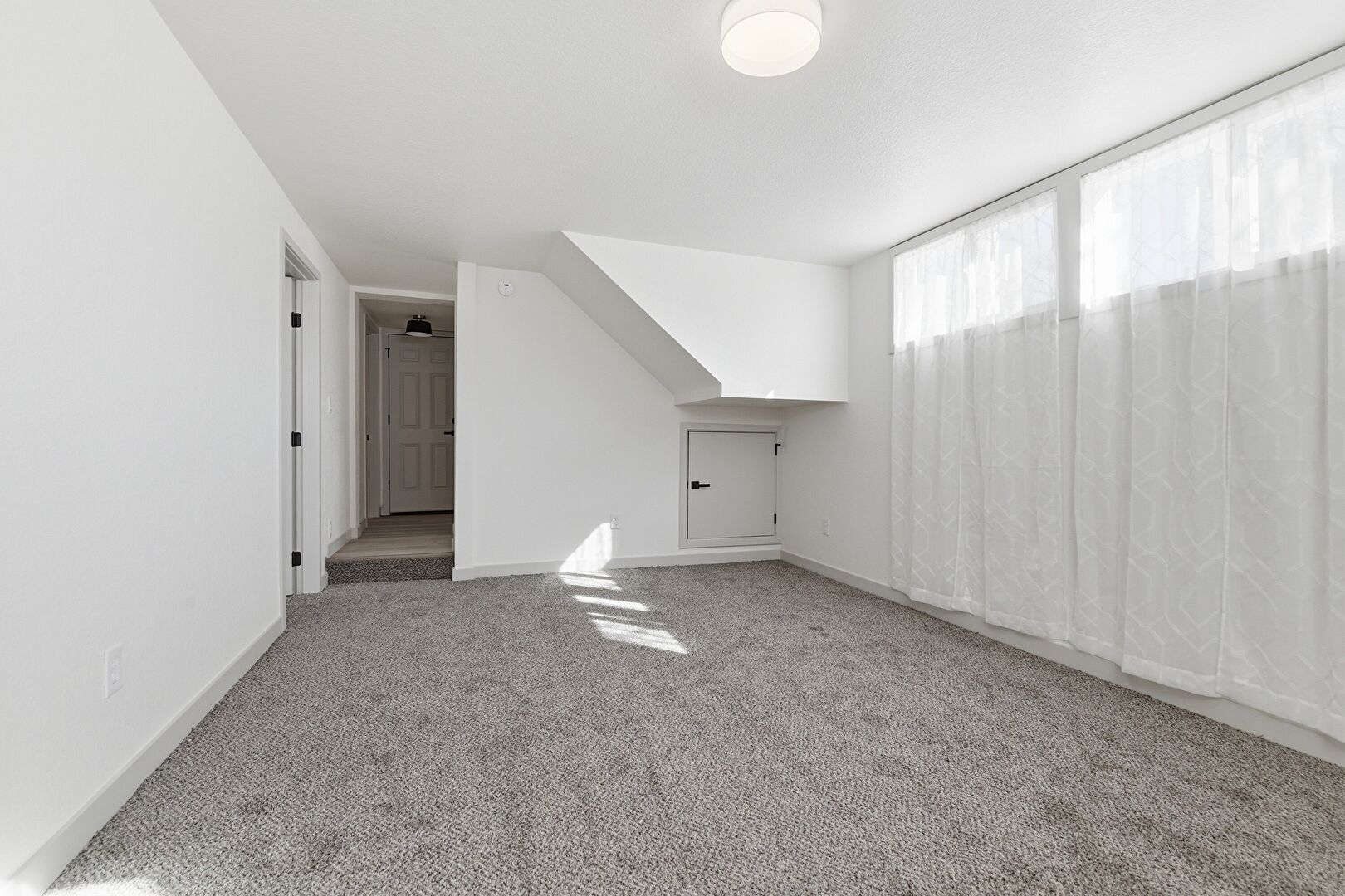 Baseboards Wall, Carpet, Drywall, Natural Light, Vaulted Ceiling, Basement, Natural Light