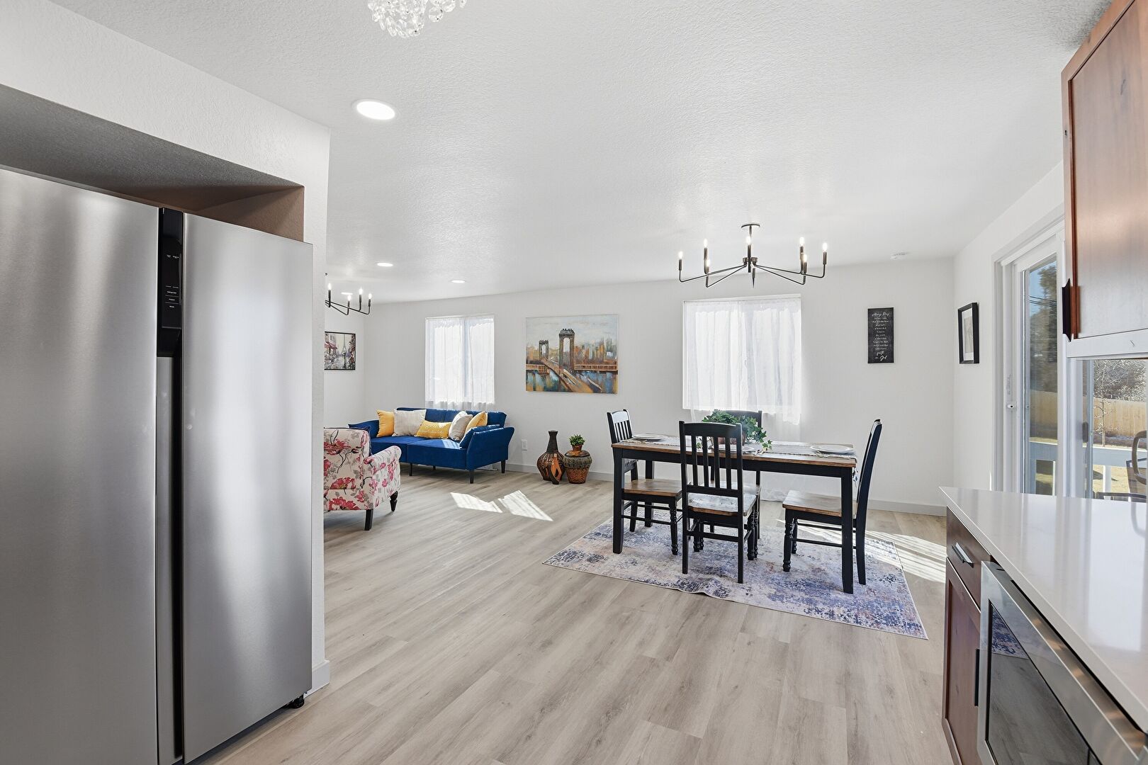 Baseboards Wall, Drywall, Natural Light, Notable Chandelier, Recessed Lighting, Wood Finish Floor, Drywall, Natural Light, Wood Finish Floor
