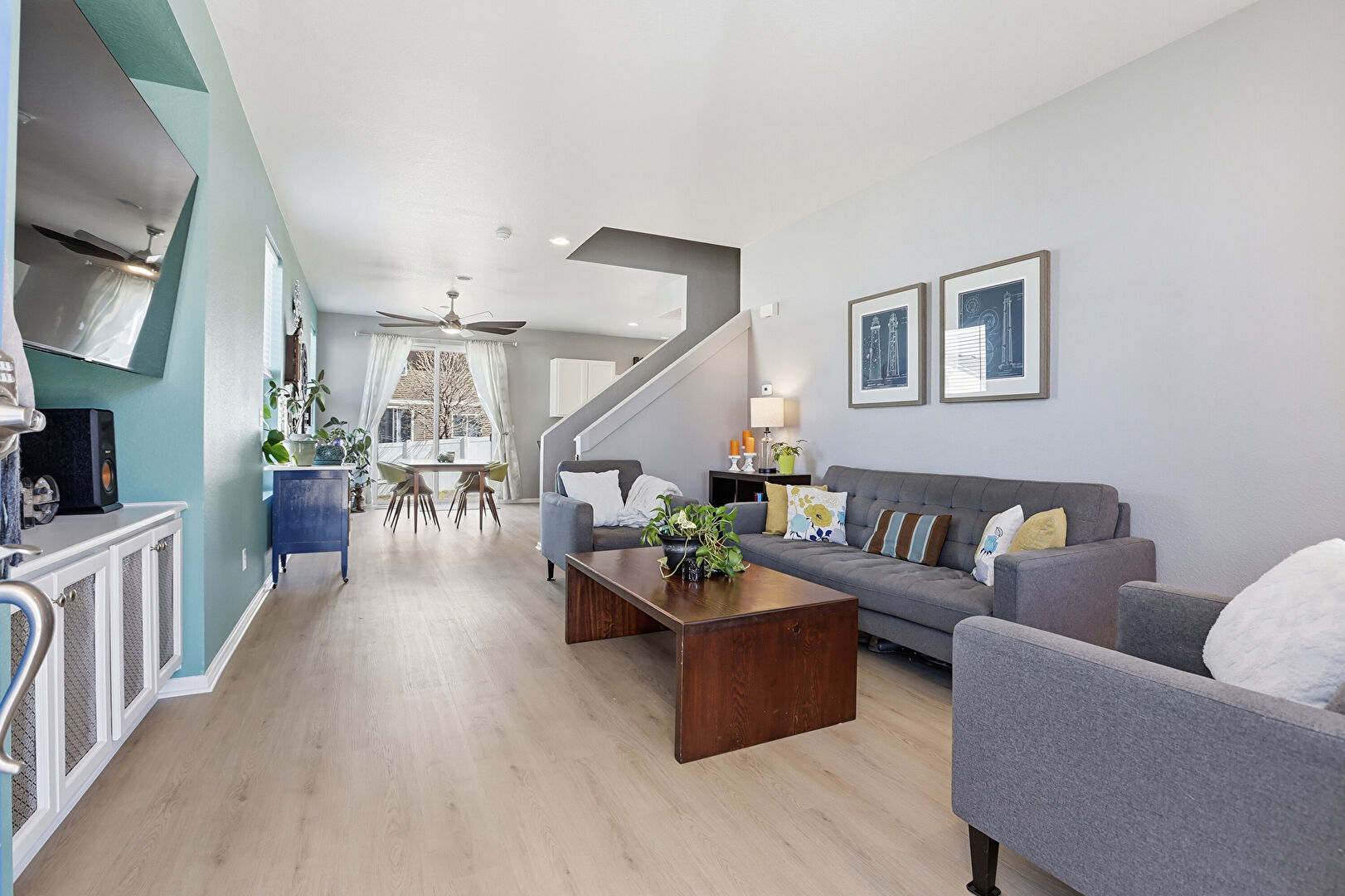 Baseboards Wall, Ceiling Fan, Drywall, Natural Light, Recessed Lighting, Stairs, Wood Finish Floor, Baseboards Wall, Natural Light, Recessed Lighting