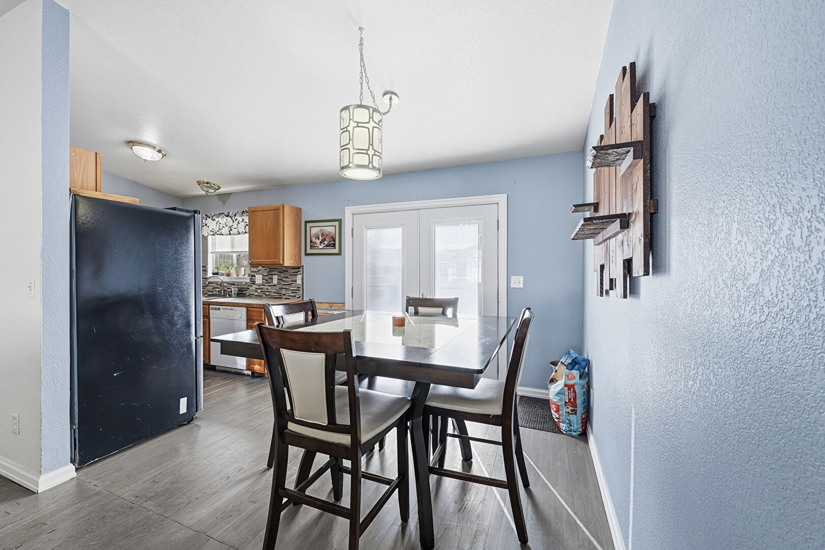 Baseboards Wall, Natural Light, Textured Wall, Wood Finish Floor, French Doors