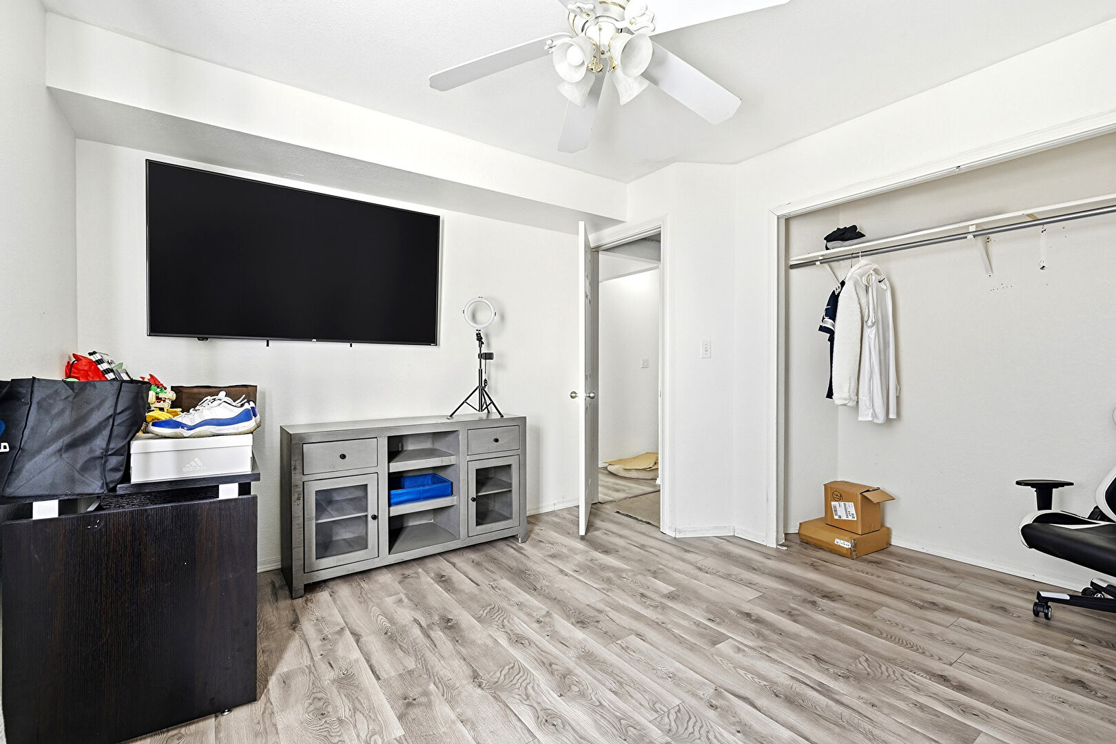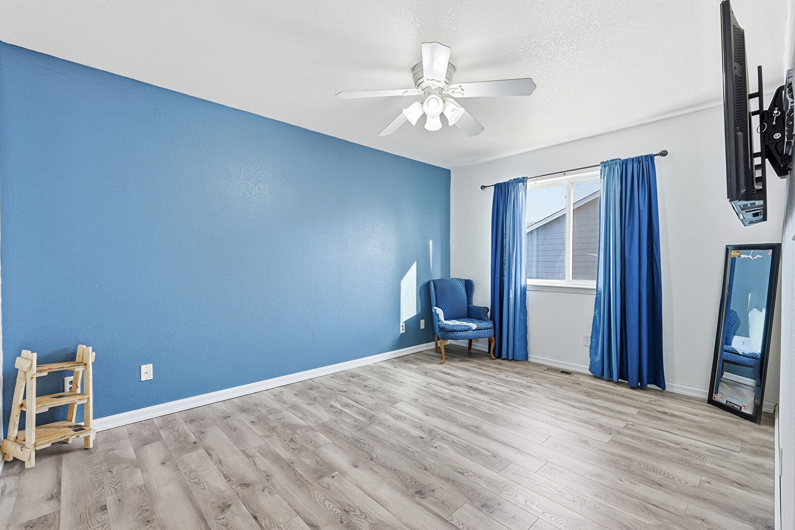 Baseboards Wall, Ceiling Fan, Drywall, Natural Light, Vent, Wood Finish Floor, Baseboards Wall, Ceiling Fan