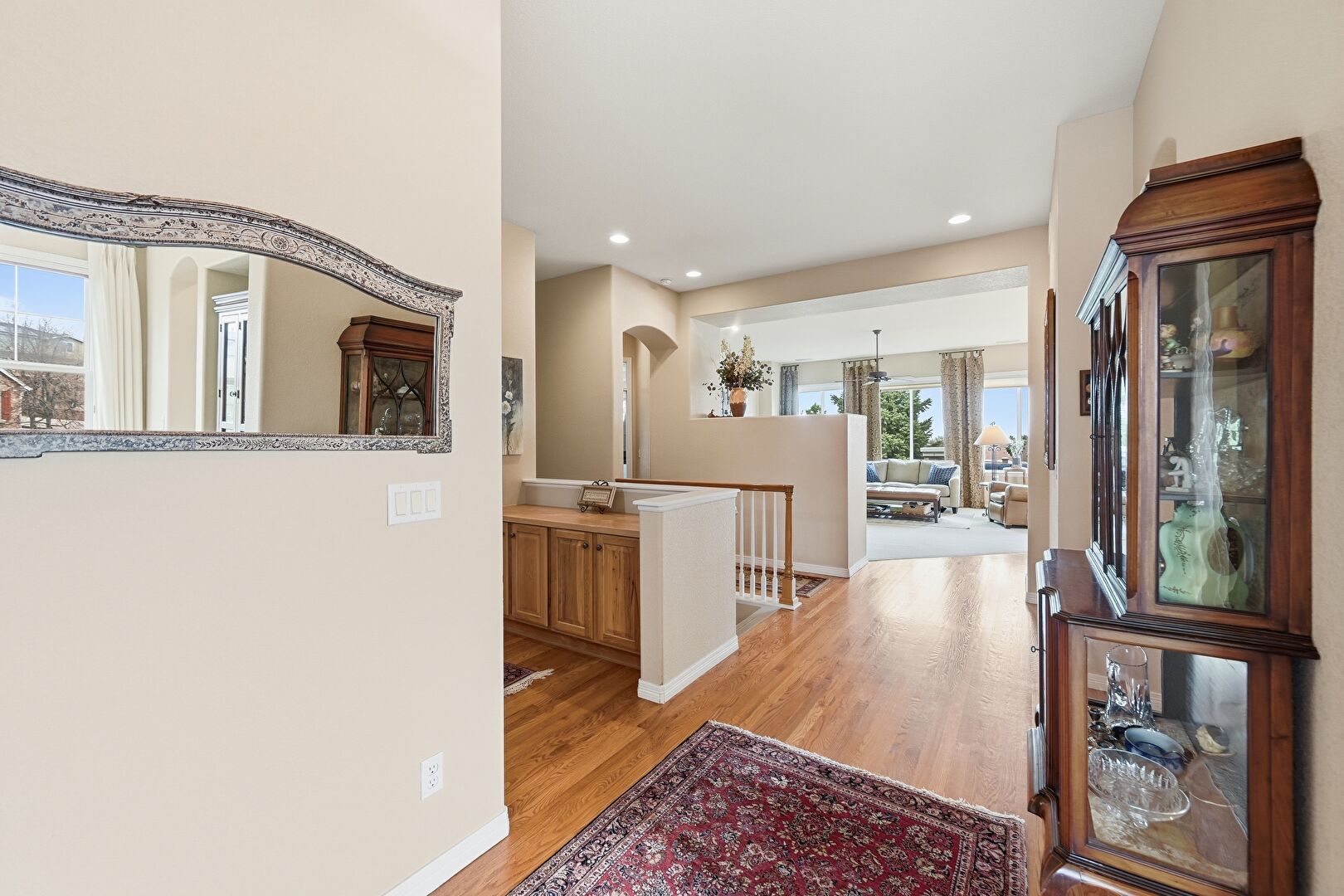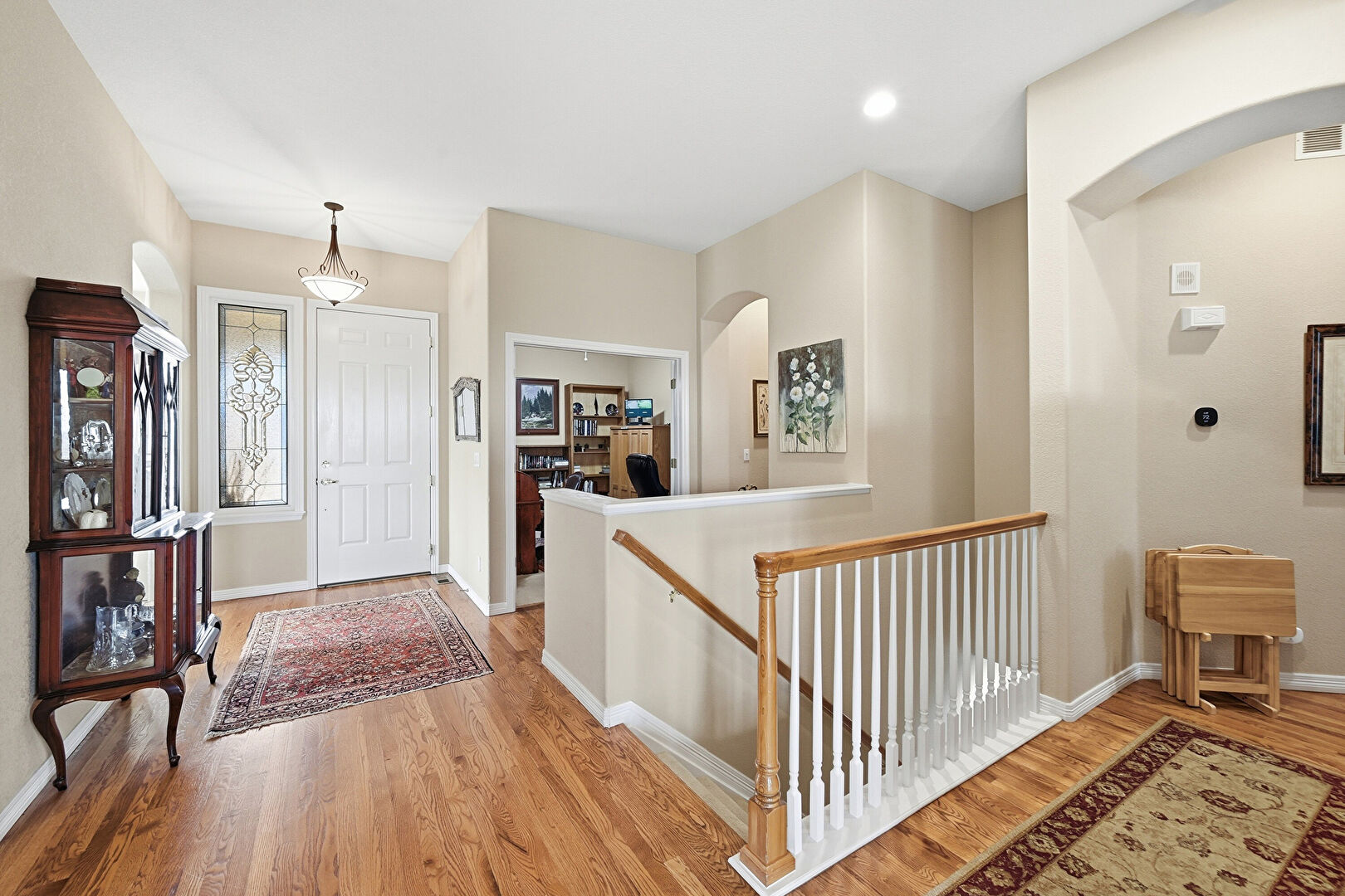 Arched Walkways, Baseboards Wall, Drywall, Recessed Lighting, Upstairs Landing, Wood Finish Floor, Natural Light