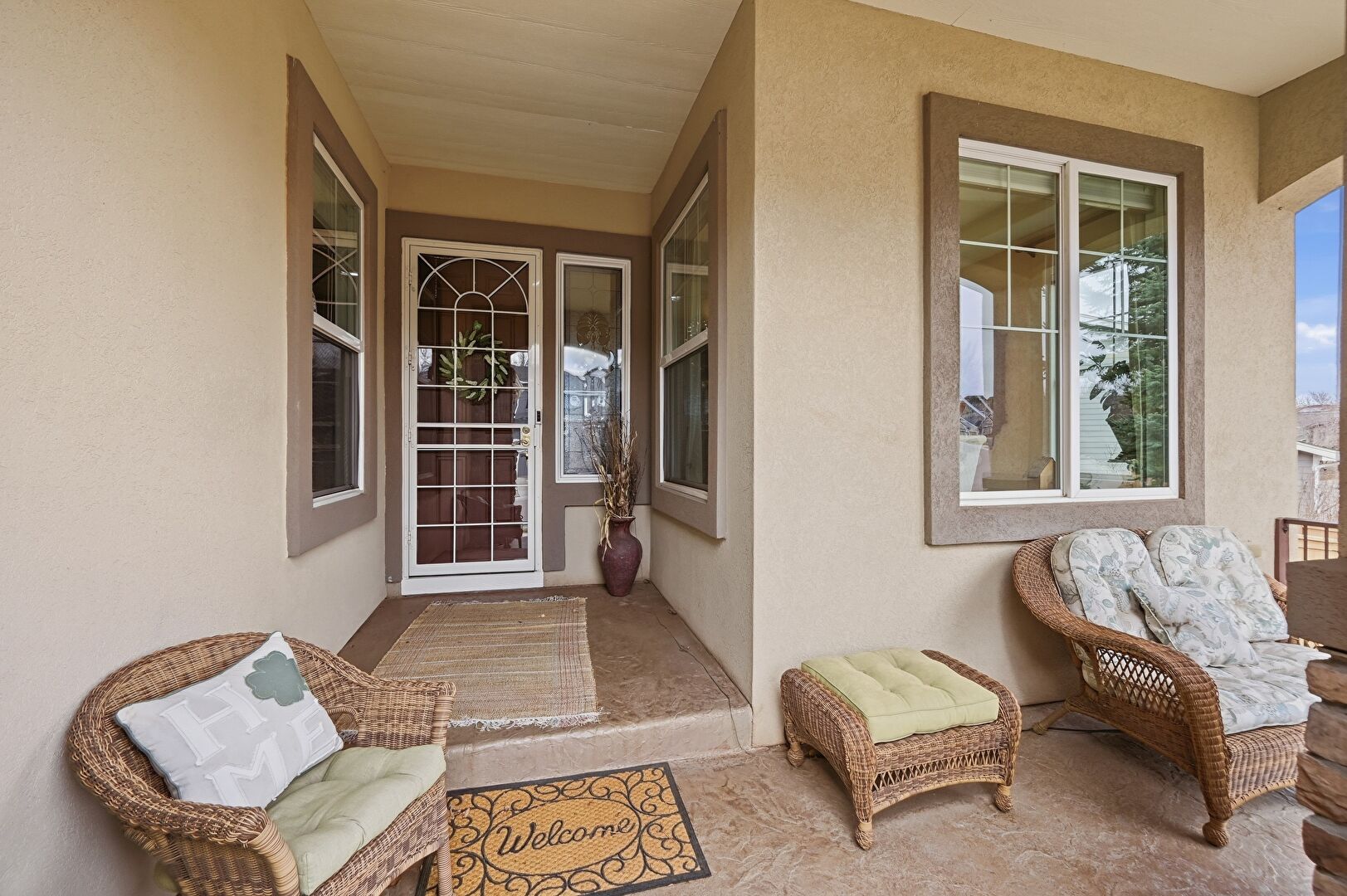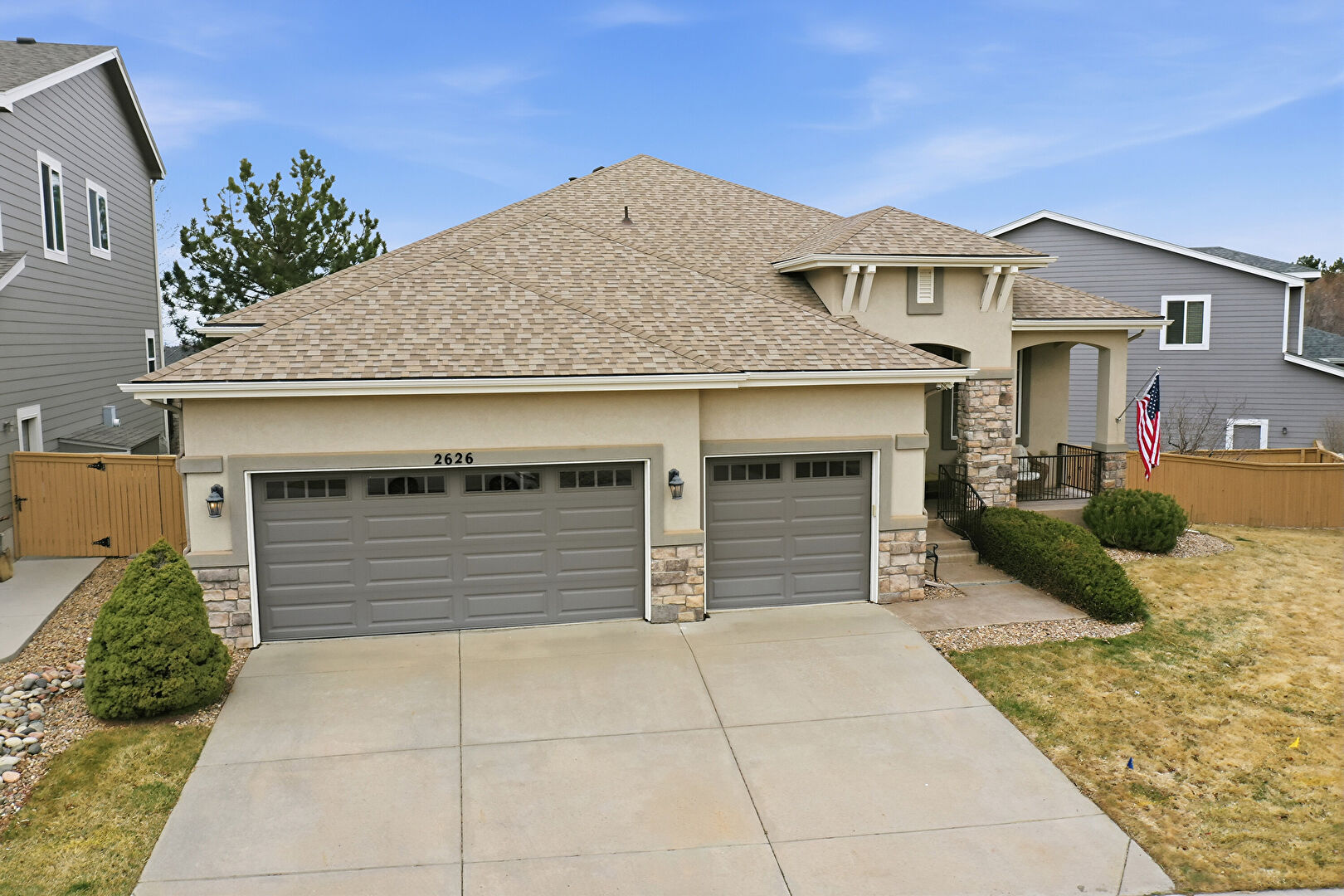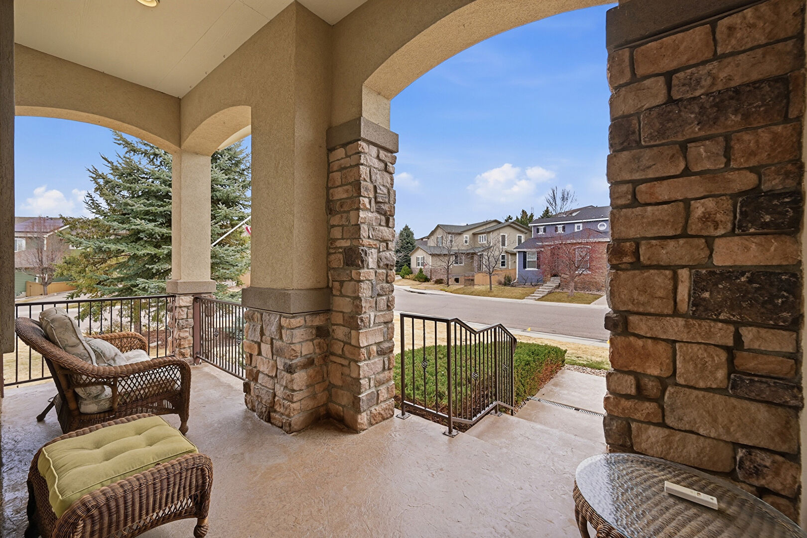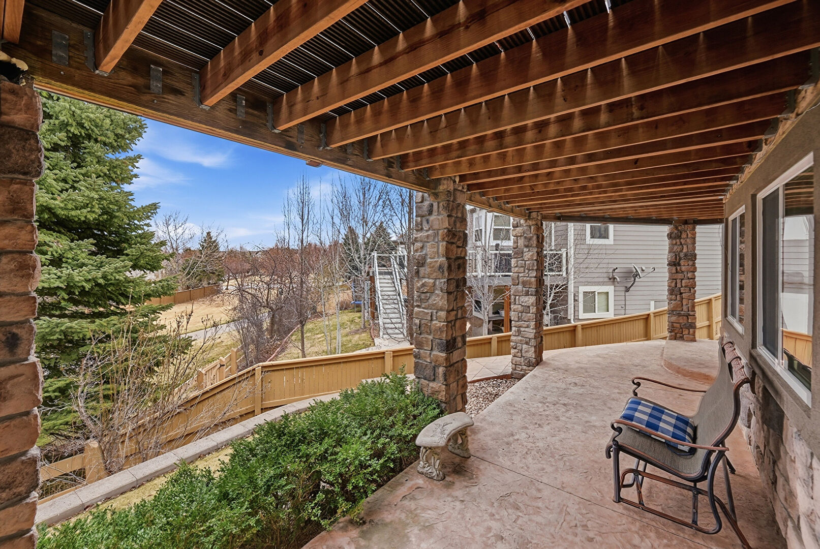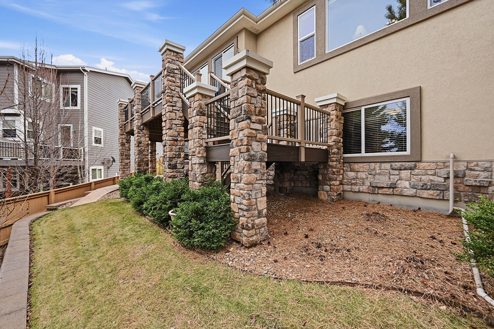 Downspout, Fence, Patio, Residential View, Shingle Roof, Stairs, Stone Siding, Stucco Siding, Deck