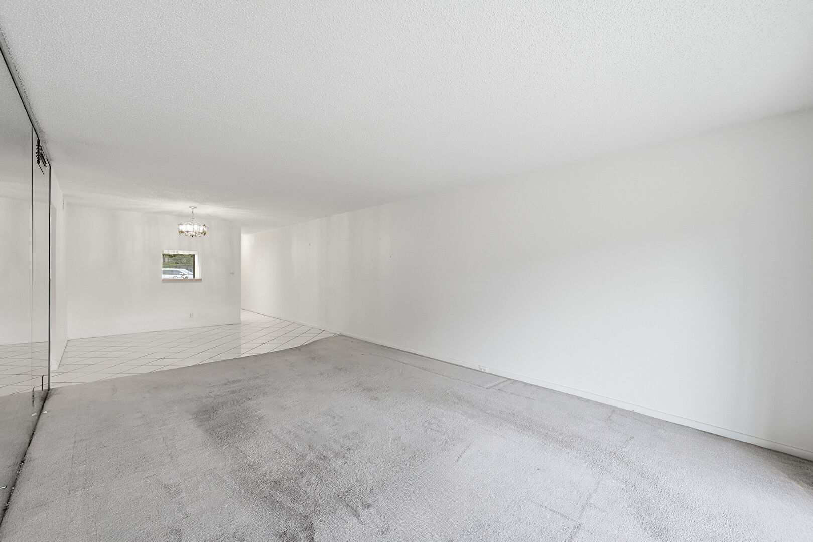 Baseboards Wall, Carpet, Drywall, Natural Light, Notable Chandelier, Textured Ceiling, Tile Floor, Vent, Carpet, Textured Ceiling