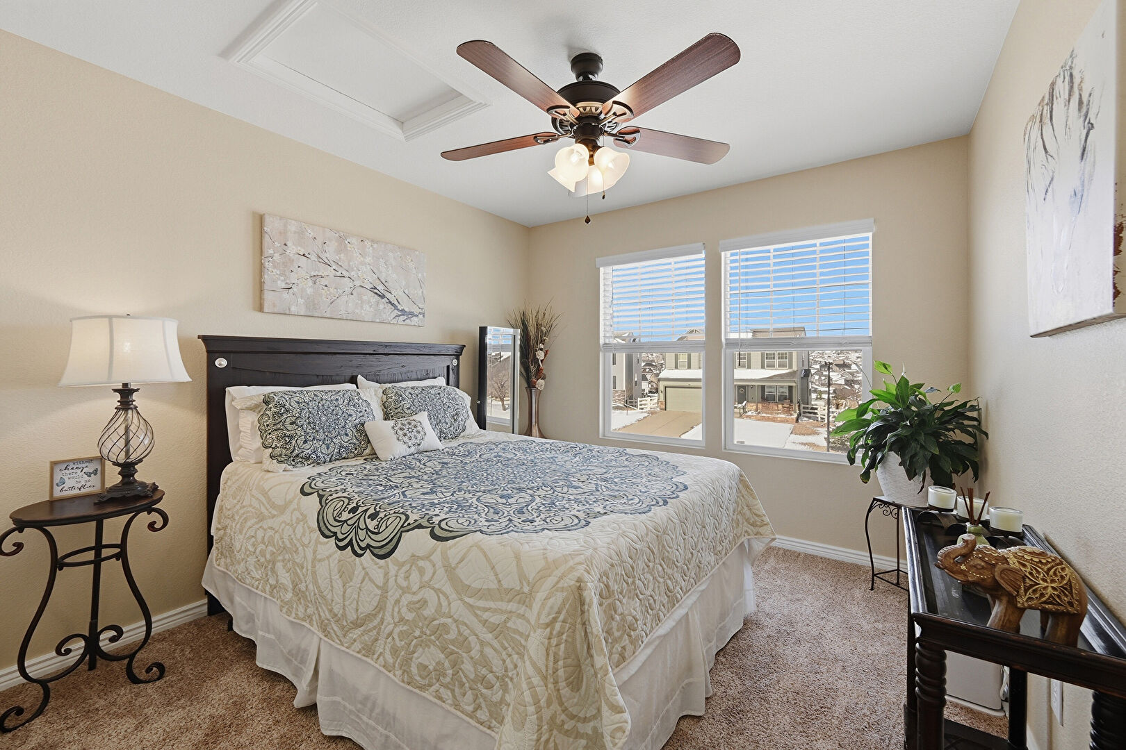 Baseboards Wall, Ceiling Fan, Closet, Drywall, Natural Light, Smoke Carbon Monoxide Detector, Carpet