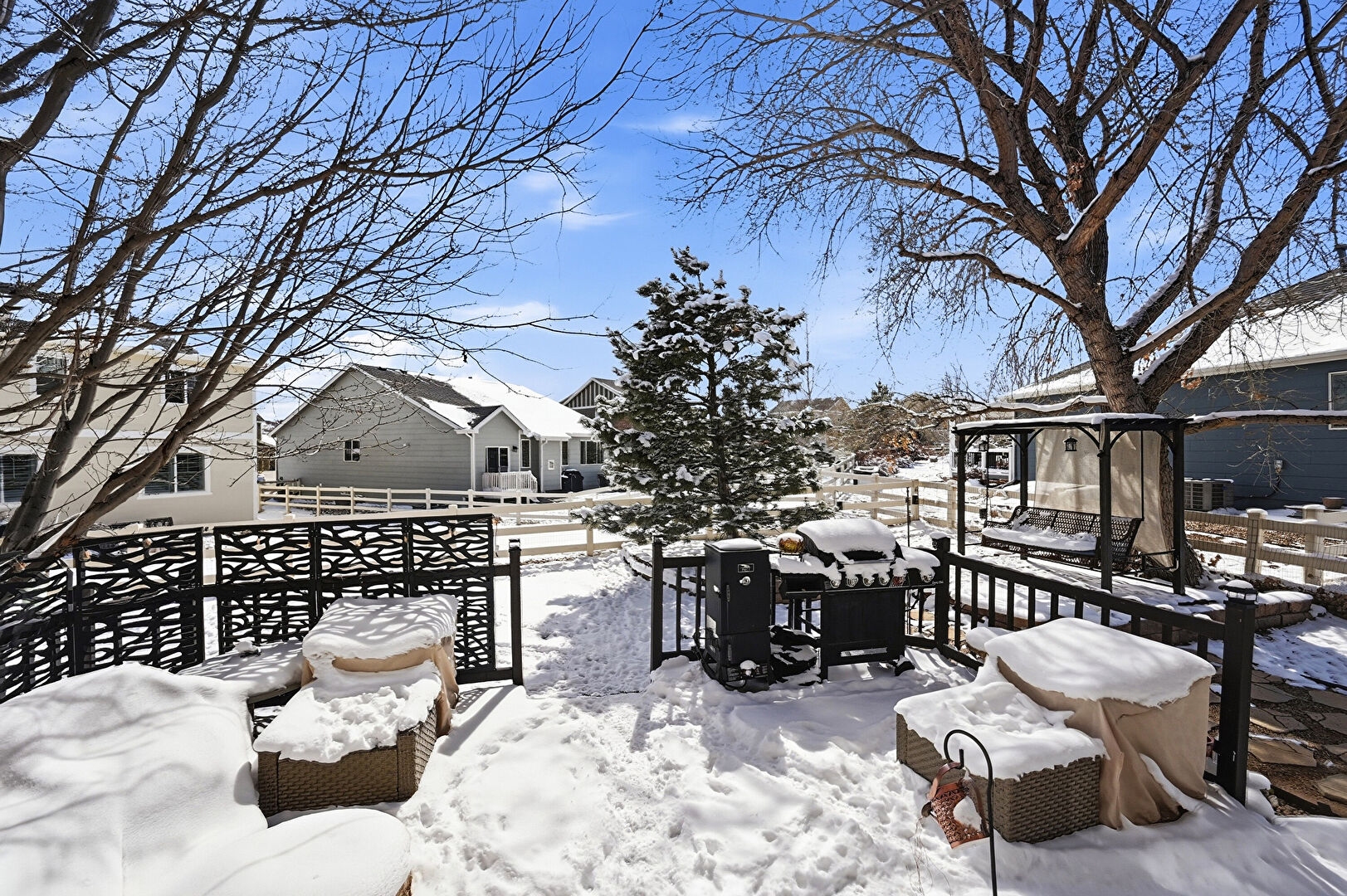 Fence, Gazebo, Grill, Residential View, Deck