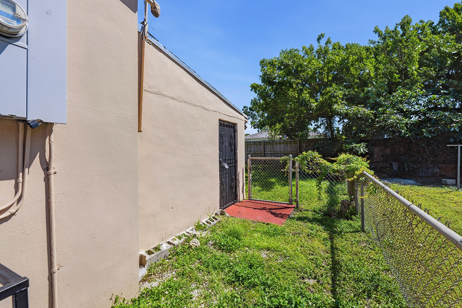 Electric Meter, Fence, Gate, Stucco Siding, Lawn