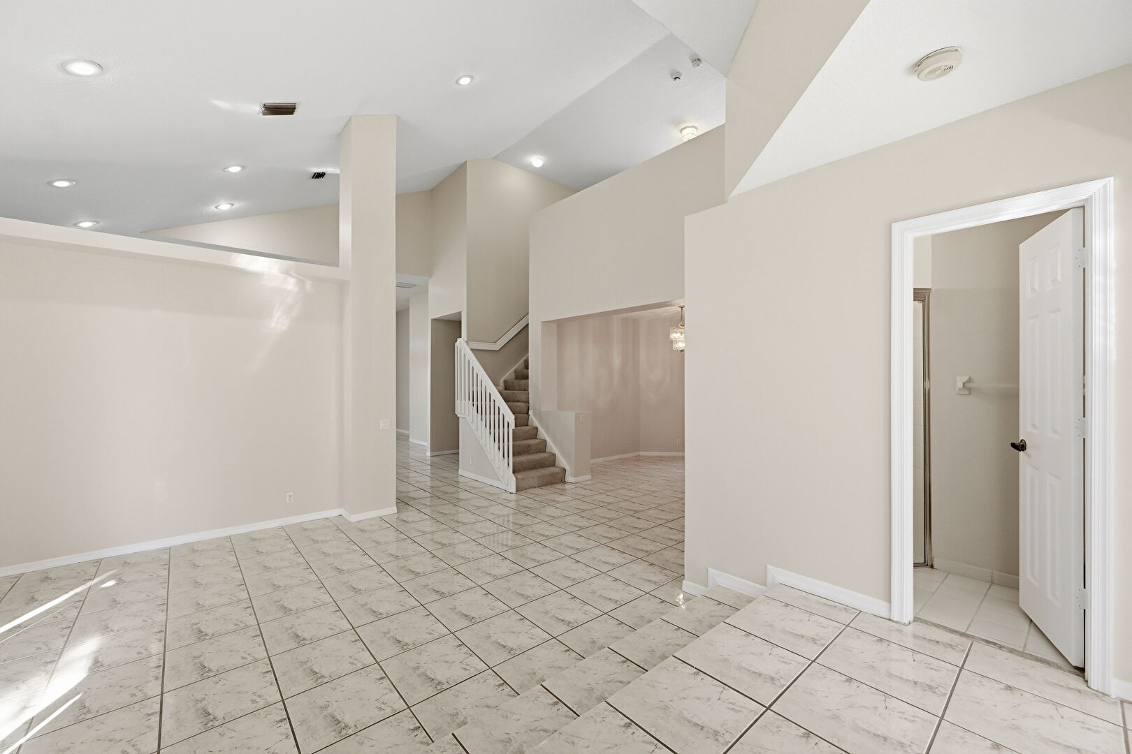Baseboards Wall, Drywall, High Ceiling, Marble Finish Floor, Natural Light, Notable Chandelier, Recessed Lighting, Smoke Carbon Monoxide Detector, Stairs, Vaulted Ceiling, Vent, Natural Light, Notable Chandelier, Smoke Carbon Monoxide Detector