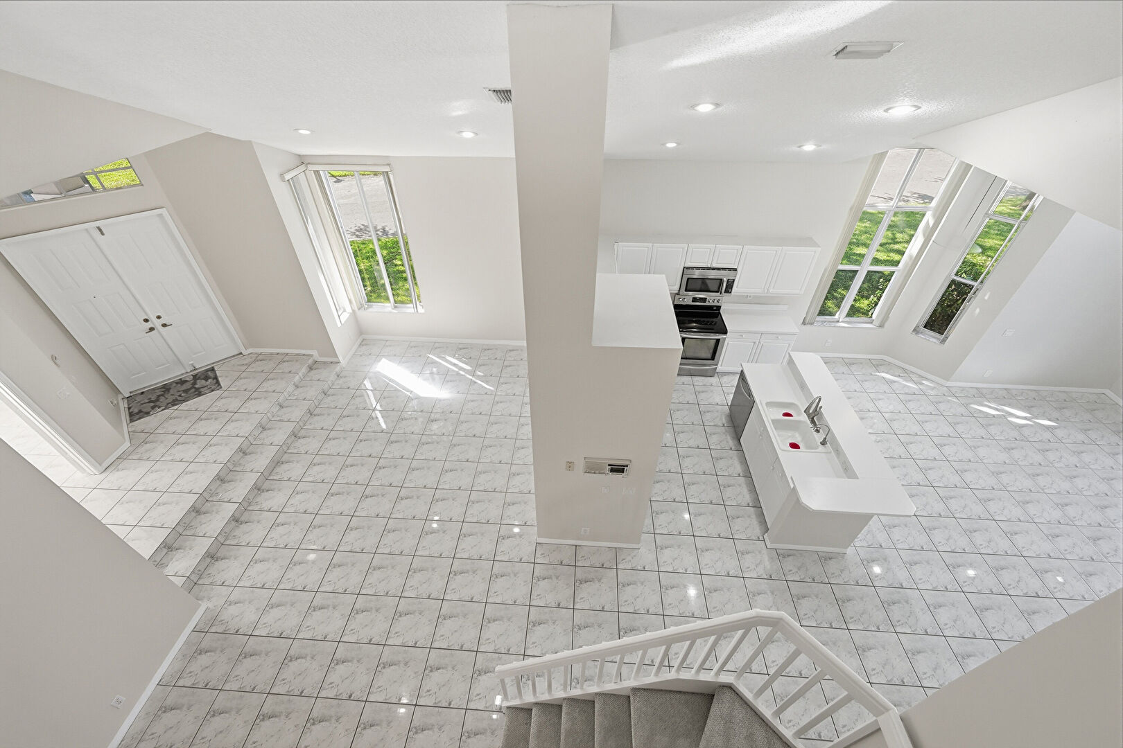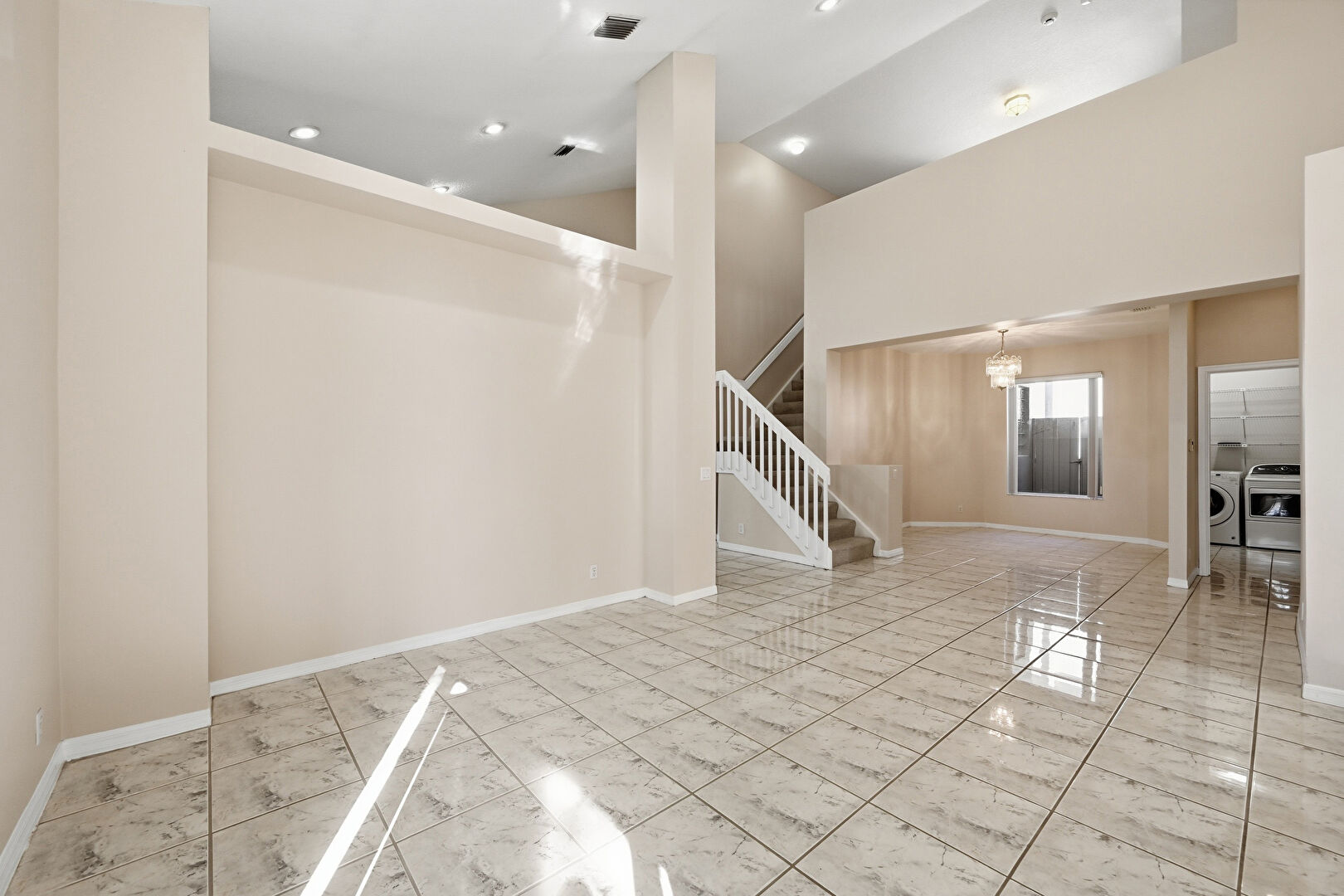 Baseboards Wall, Drywall, High Ceiling, Laundry, Marble Finish Floor, Natural Light, Notable Chandelier, Recessed Lighting, Smoke Carbon Monoxide Detector, Vaulted Ceiling, Vent, High Ceiling, Stairs