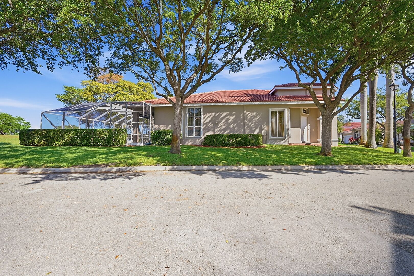 Driveway, Lawn, Porch, Residential View, Stucco Siding, Sunroom, Tile Roof, Water Meter, Driveway, Lanai, Lawn, Stucco Siding