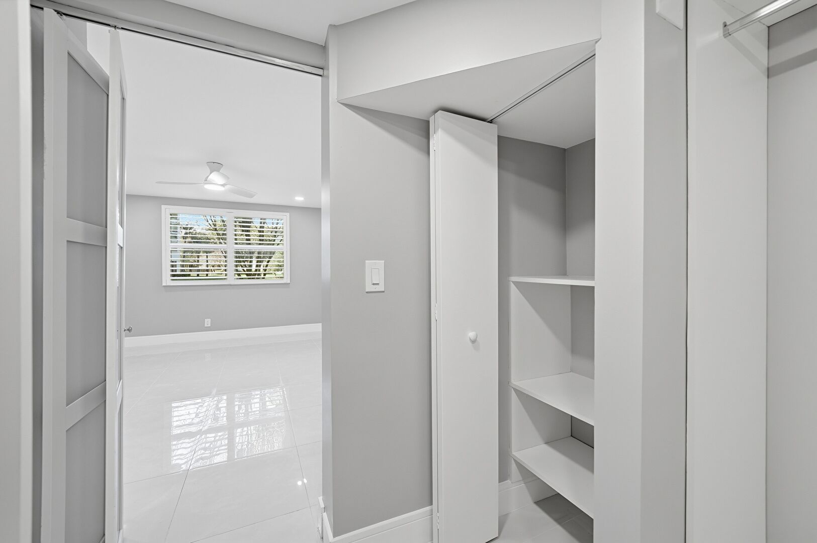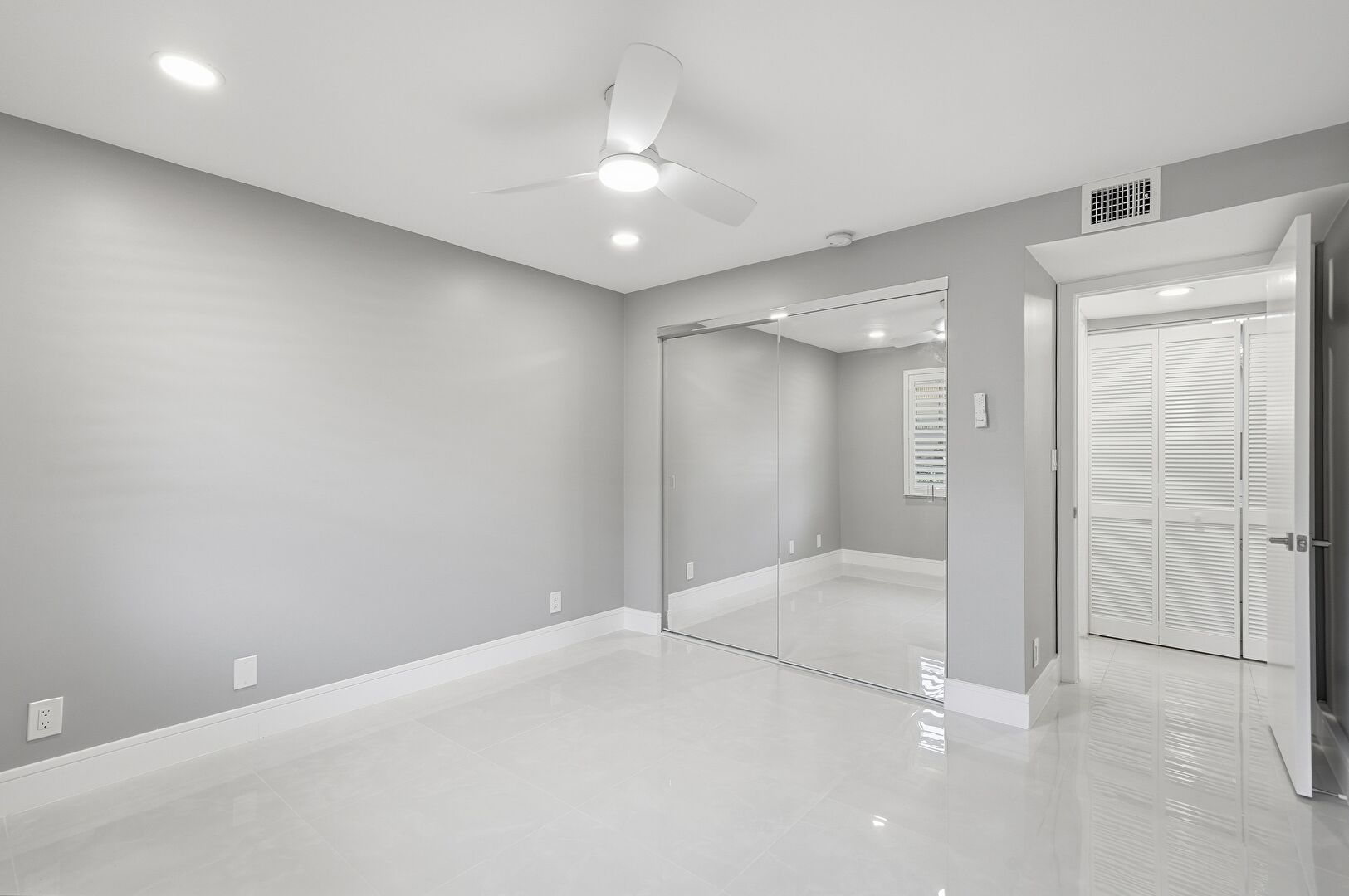 Ceiling Fan, Closet, Drywall, Natural Light, Recessed Lighting, Tile Floor, Vent, Baseboards Wall