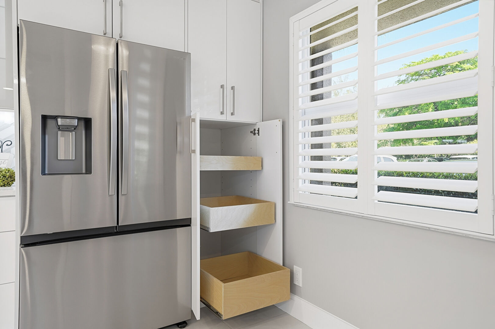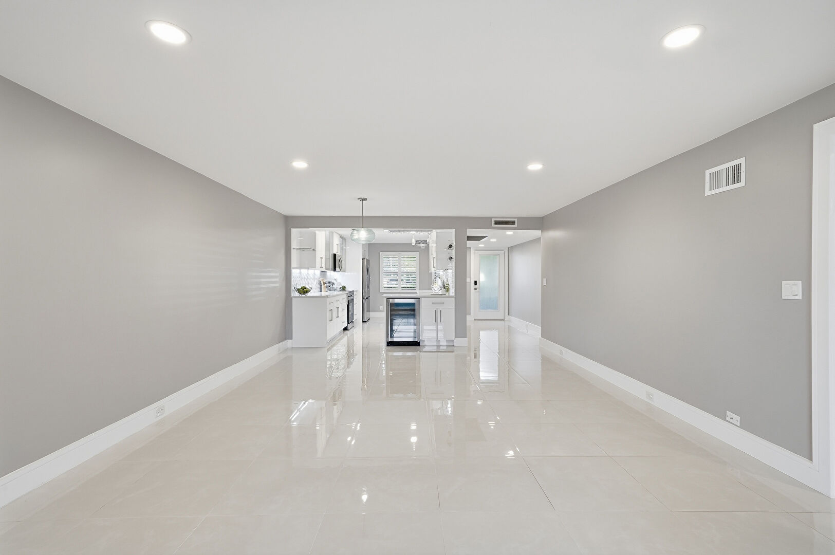 Baseboards Wall, Drywall, Natural Light, Recessed Lighting, Tile Floor, Vent, Wine Cooler, Baseboards Wall, Recessed Lighting, Wine Cooler