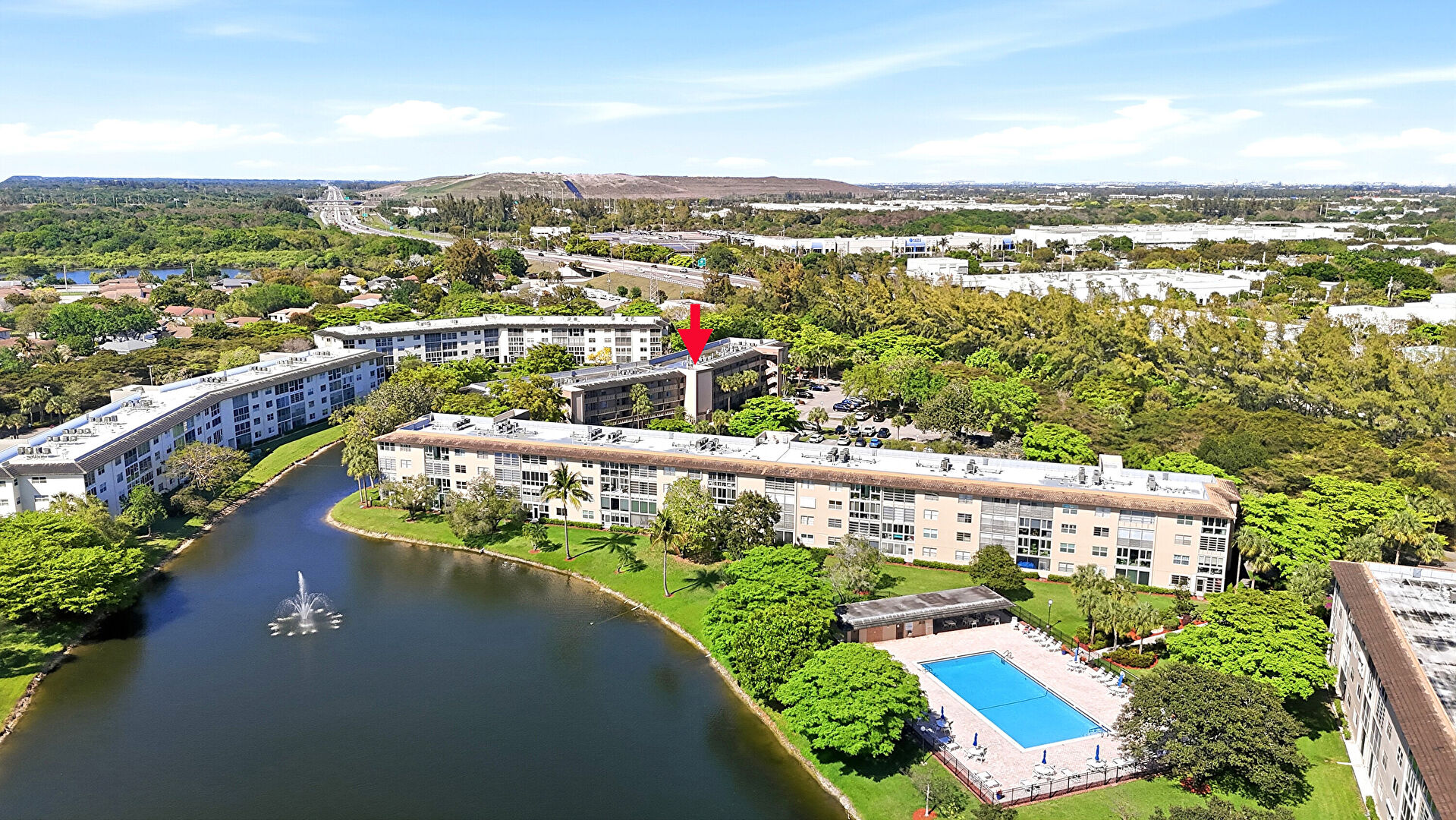 Apartment Complex View, Fence, Fountain, Handrail, Lawn, Patio, Pool, Water View, Apartment Complex View, Fence