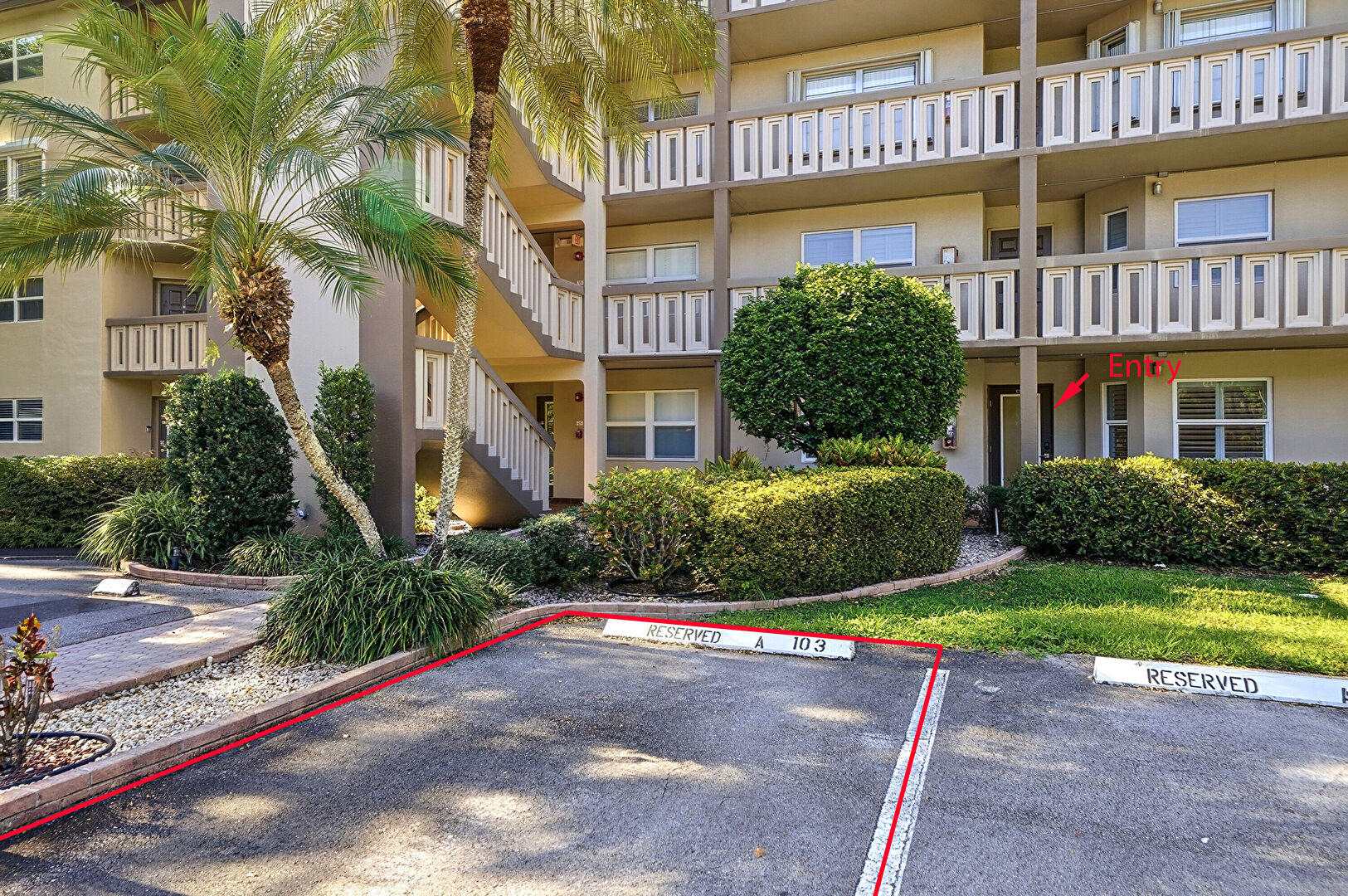 Apartment Complex View, Parking Lot, Stairs