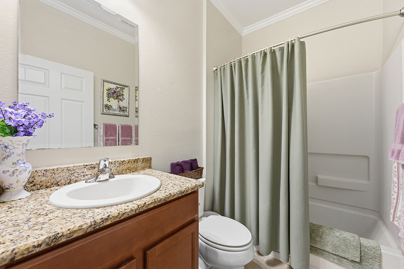 Crown Molding, Drywall, Full Bathroom, Vanity, Combined Bath Shower
